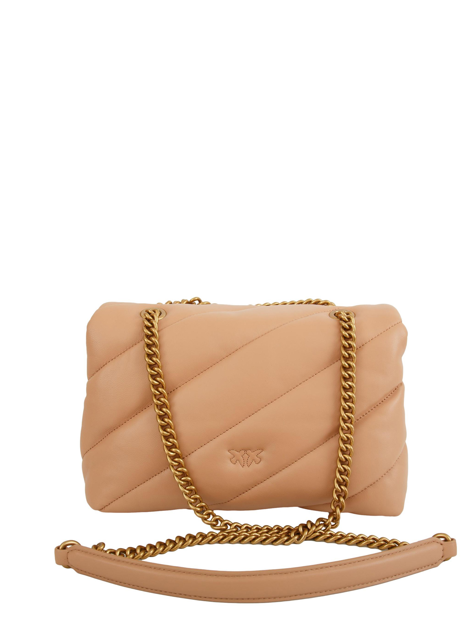 Brand: PINKOBorsa Love Bag Puff di Pinko in morbida nappa con maxi trapuntatura obliqua. Chiusura con fibbia in metallo Love Birds Diamond Cut. Interno foderato in microfibra scamosciata con tramezza chiusa con zip e tasca a parete. Tracolla con catena metallica e spallaccio in nappa. Dimensioni: 26x17x11 cm.