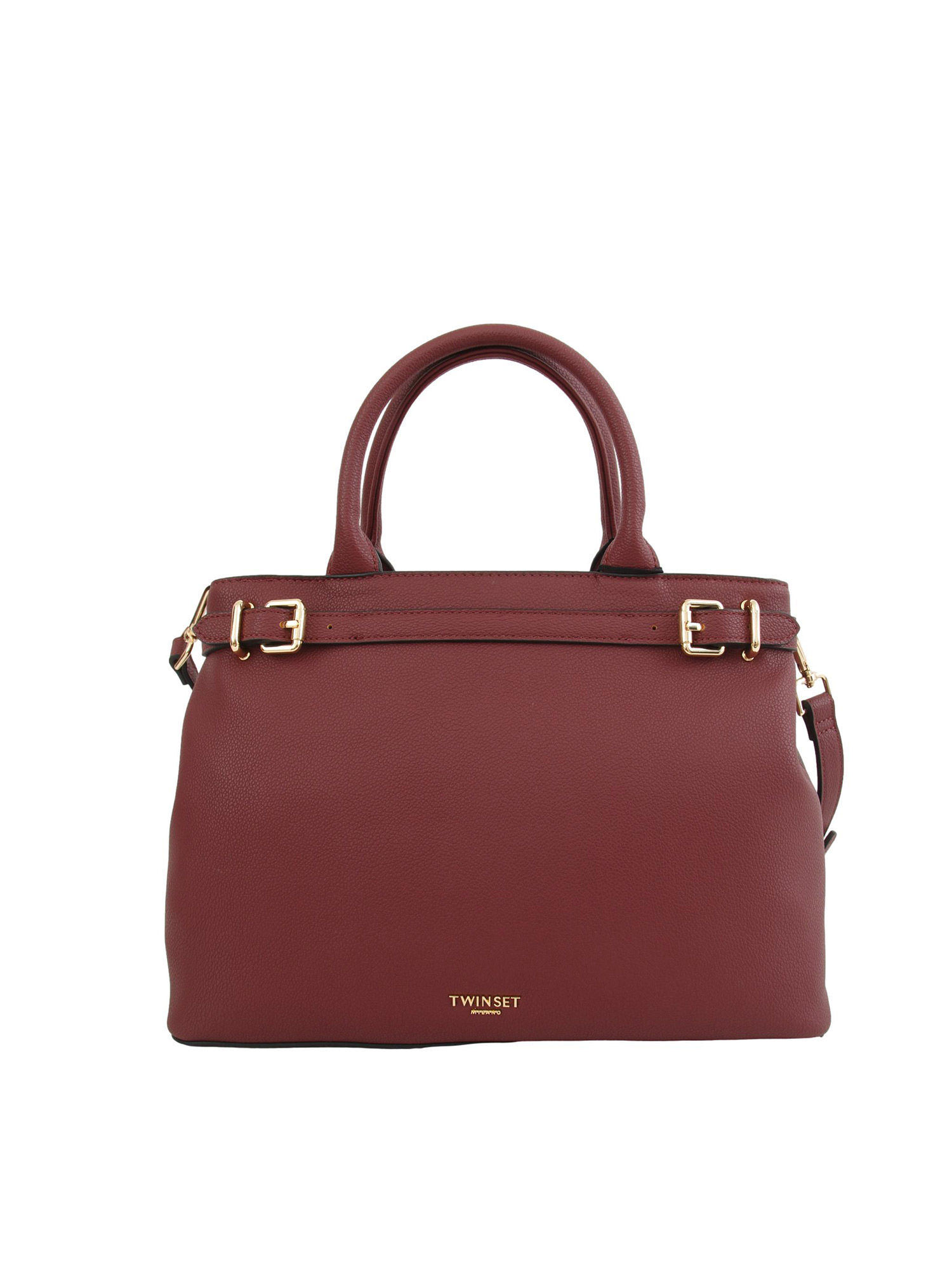 TWIN-SET Borsa shopper Twinset con fibbie e tracolla in pelle ecologica bordeaux