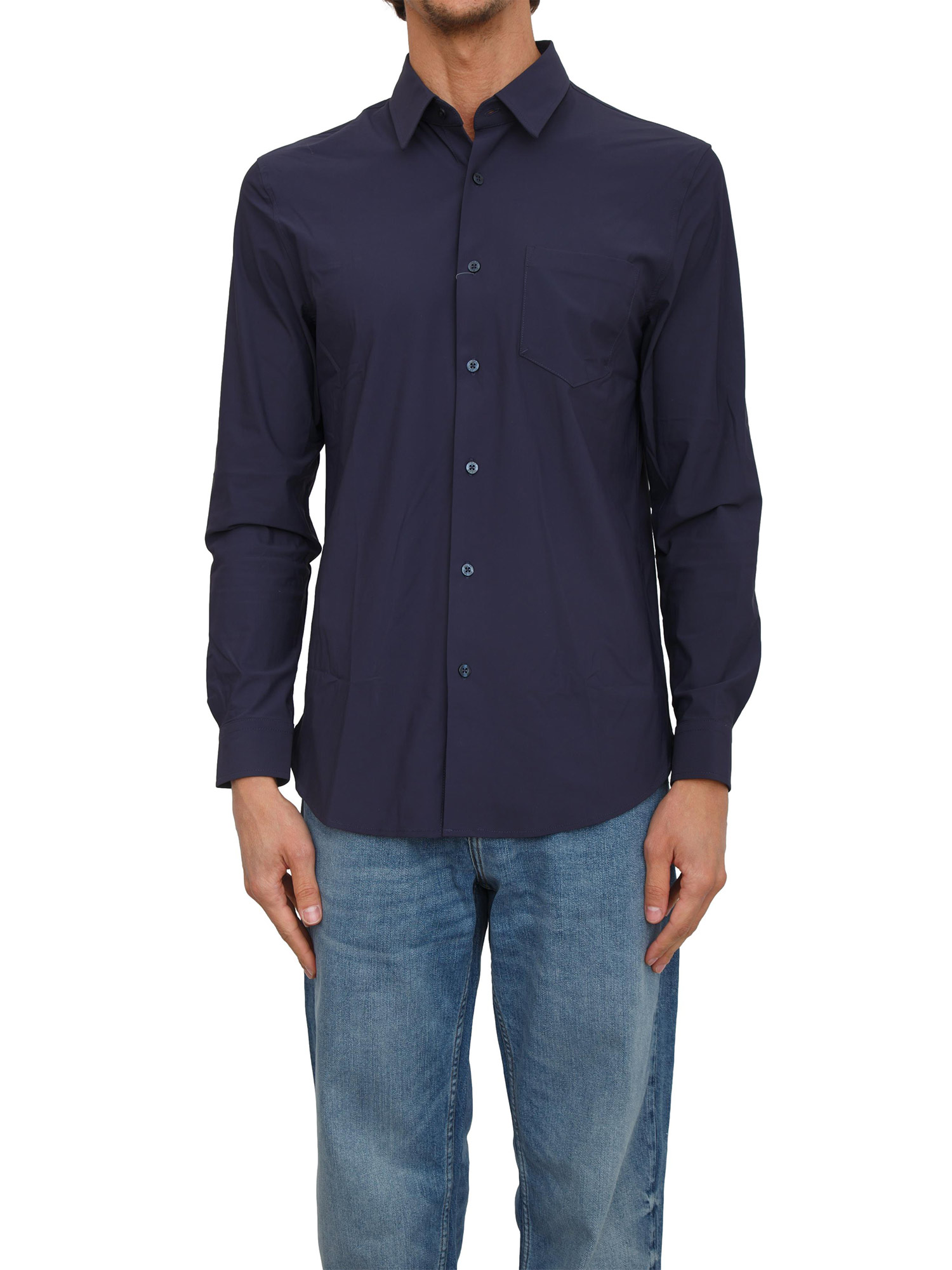Brand: GUESS JEANSCamicia Guess Jeans uomo realizzata in cotone stretch con vestibilità slim. Collo classico, chiusura con bottoni tono su tono e tasca applicata sul petto. Il modello è alto 1.90m e indossa la taglia M.
