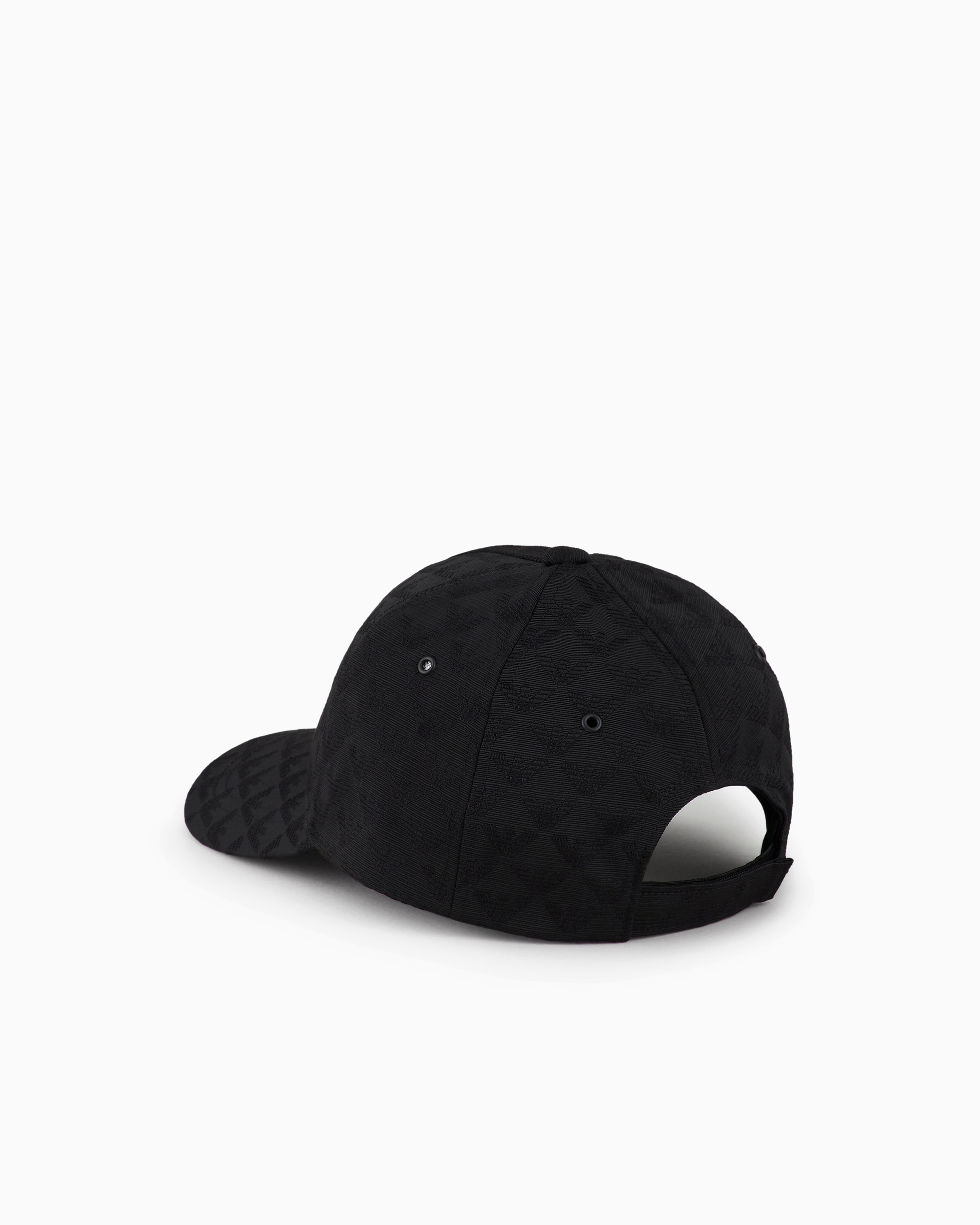 Cappello da baseball Emporio Armani in tessuto nero jacquard logo