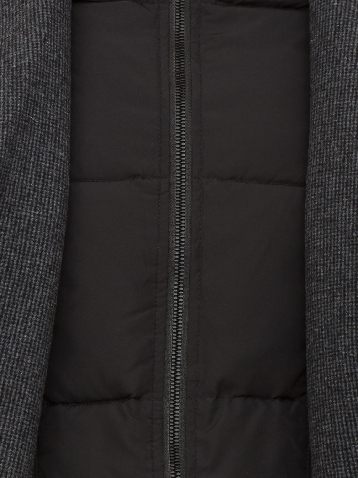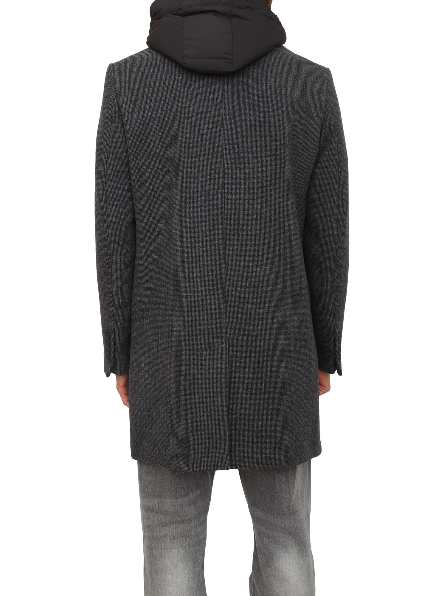 Brand: ANTONY MORATOCappotto Antony Morato regular fit in misto viscosa, dotato di pettorina estraibile con cappuccio e imbottita con eco-imbottitura DuPont Sorona®. Il cappotto presenta chiusura con bottoni, due tasche a filetto laterali e motivo microcheck. Il modello è alto 1.90m e indossa la taglia 48.