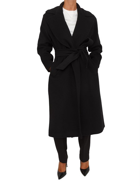 Cappotto lungo Fracomina in lana nera con collo rever