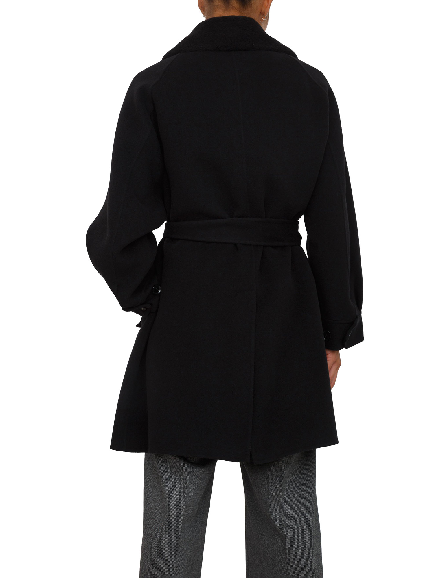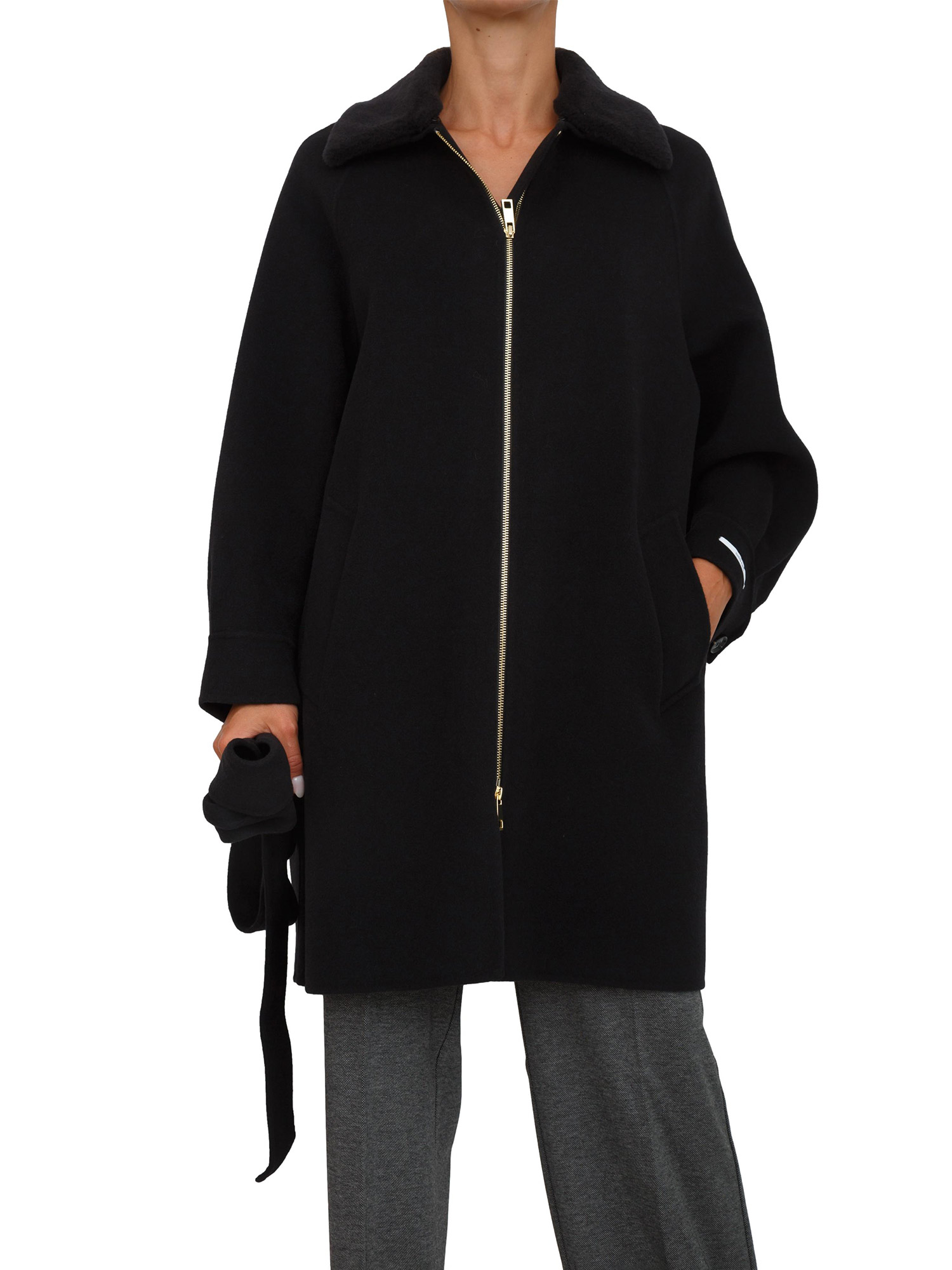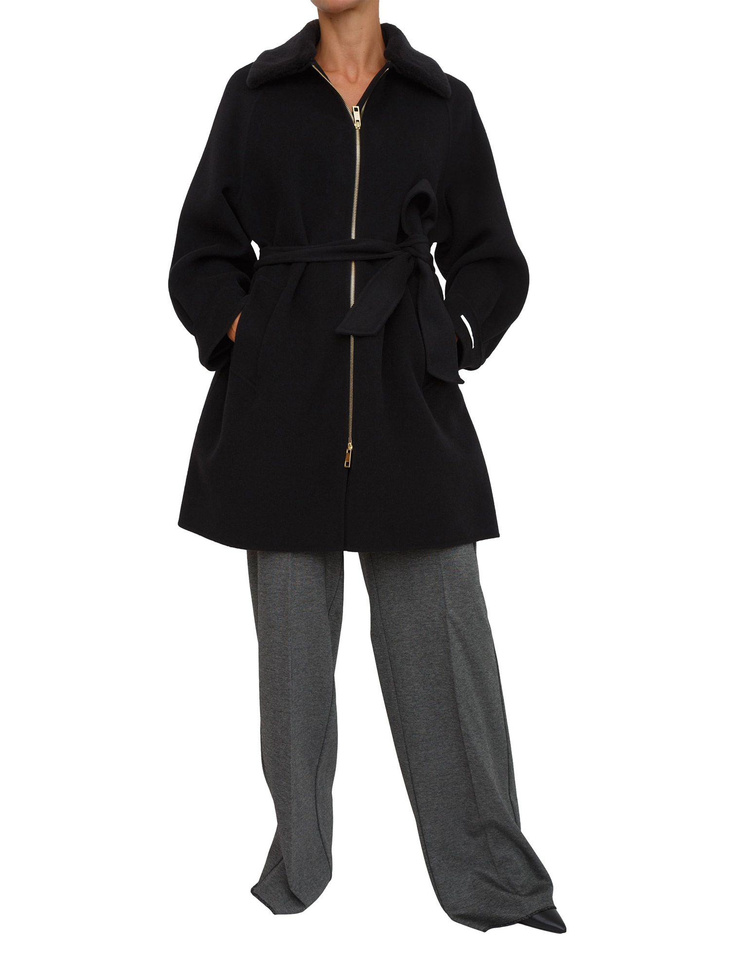 Cappotto Marella in misto lana nera con chiusura zip oro