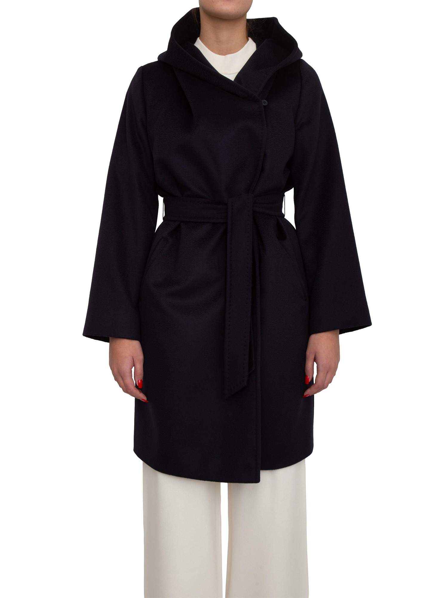 Brand: MAX MARACappotto midi Newmang Max Mara modello a vestaglia, caratterizzato da cappuccio ampio e linea avvolgente. Realizzato in doppio drap di pura lana, maniche lunghe a giro, chiusura con cintura abbinata e tasche a filettone sui fianchi. La modella è alta 1.77 e indossa la taglia 44.