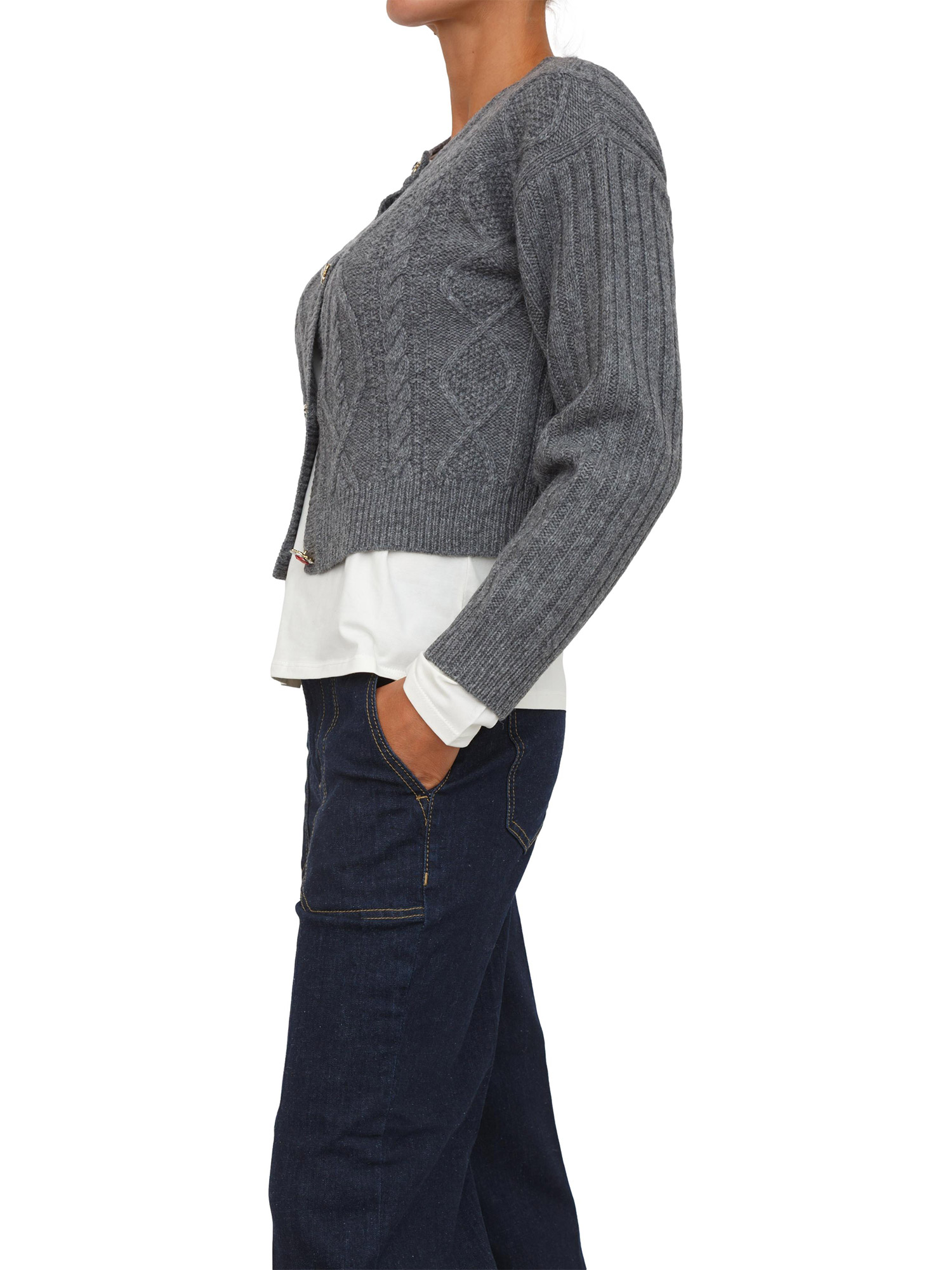 Cardigan in maglia Liu Jo in lana grigia con bottoni gioiello