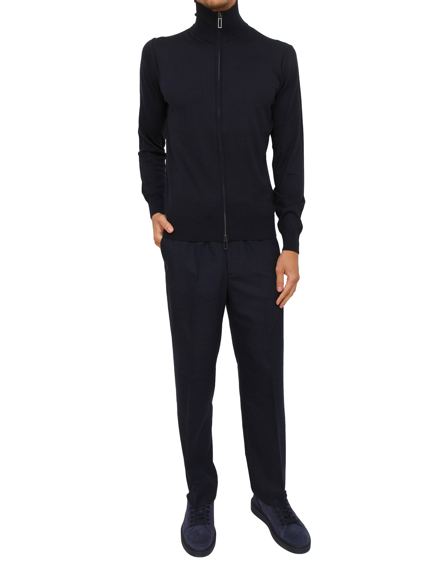 Brand: PAOLO PECORACardigan Paolo Pecora in lana merino extrafine con zip frontale, pensato per garantire morbidezza e calore. Il design con collo alto, chiusura a doppio cursore e bordi a costine uniscono praticità ed eleganza contemporanea. Un capo versatile. Il modello è alto 1.90m e indossa la taglia L.