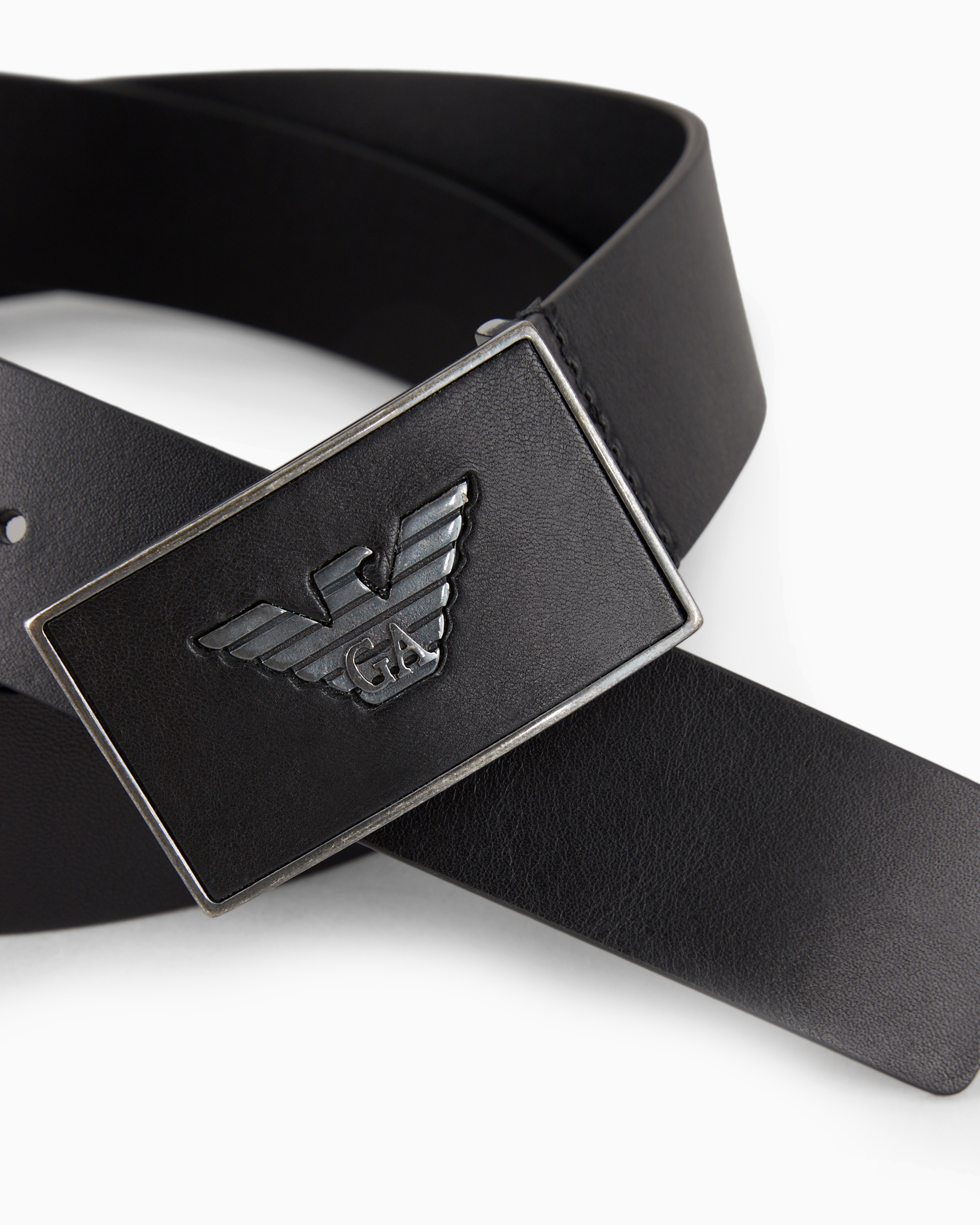 Brand: EMPORIO ARMANIQuesta cintura uomo Emporio Armani, realizzata in pelle bovina, si caratterizza per l'iconica aquila sulla fibbia. Anche il look più basic si impreziosisce grazie ad un accessorio come questo. Altezza: 3,5 cm.