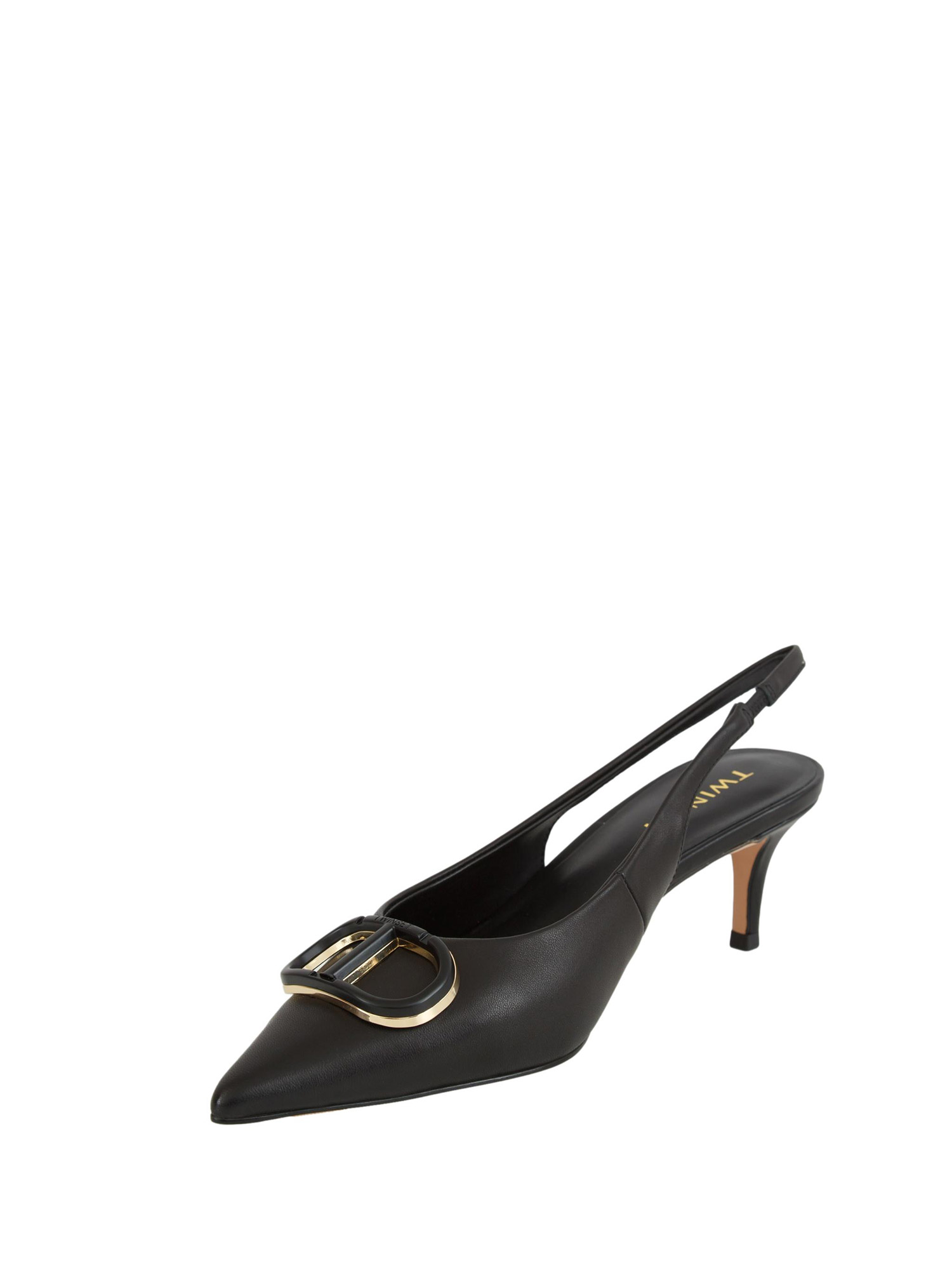 Brand: TWIN-SETDécolleté sling back Twinset realizzate in pelle con Oval T smaltato in tono, punta sfilata, tacco basso a stiletto e fondo in tunit.
