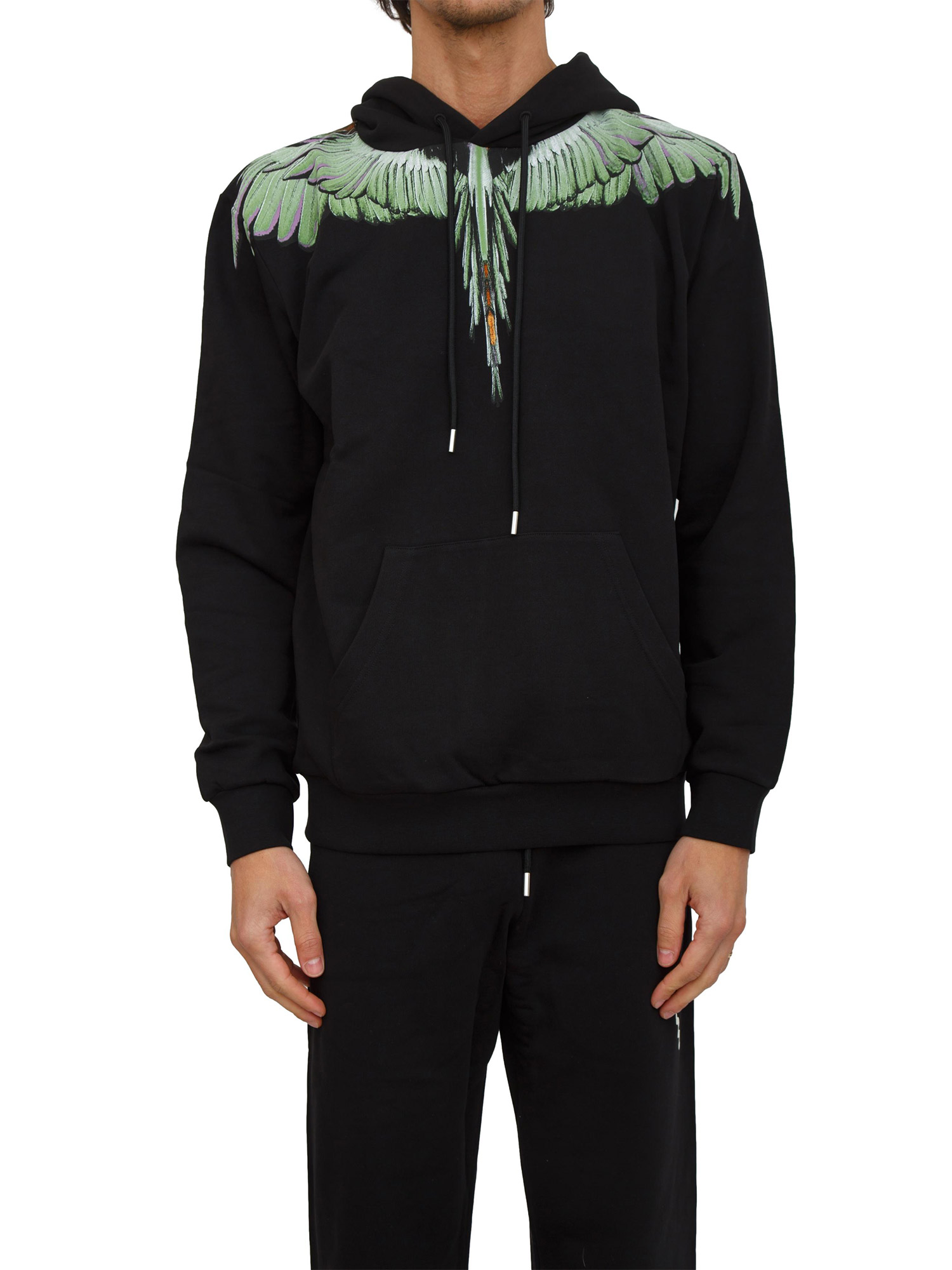 Felpa con cappuccio County of Milan nera con stampa aquila verde