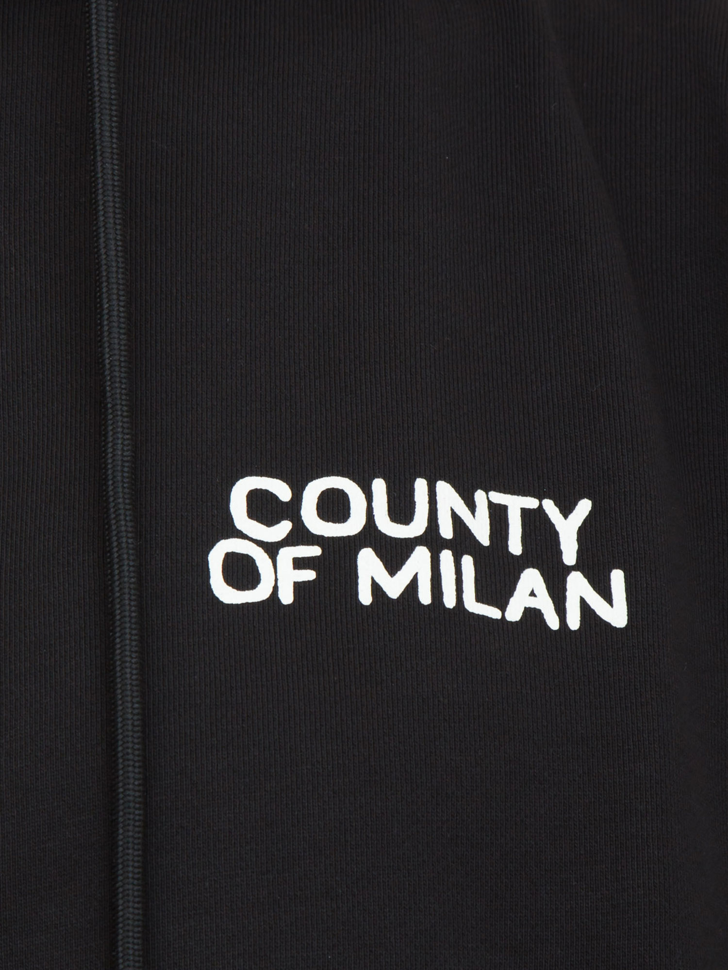 Felpa con cappuccio County of Milan nera con stampa logo dietro