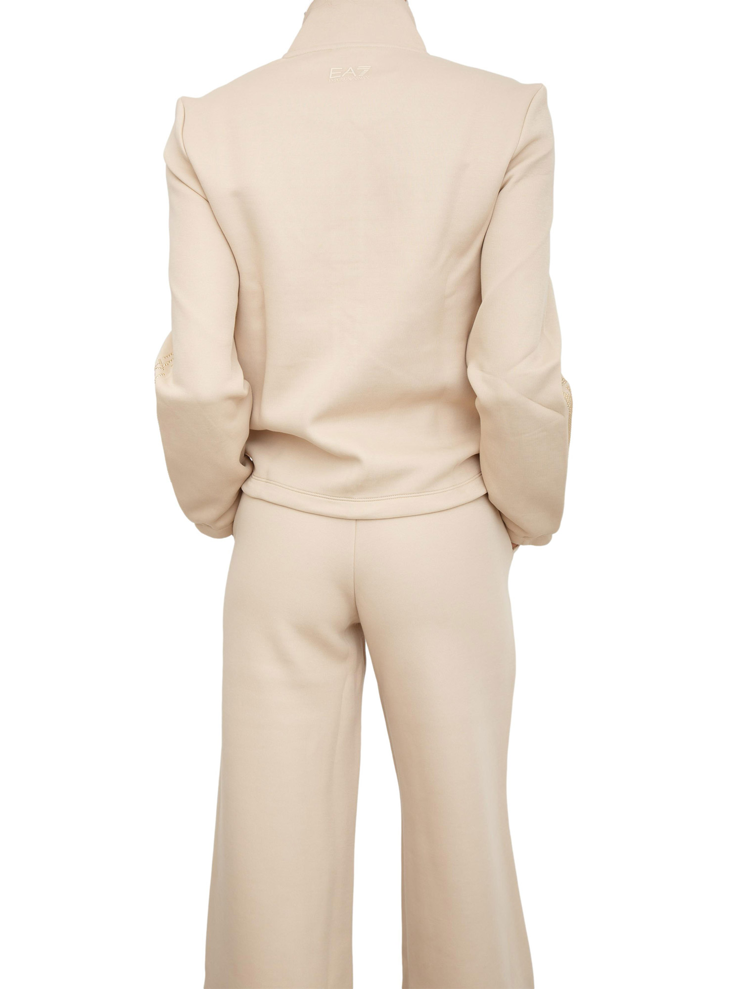 Felpa EA7 Emporio Armani in misto cotone beige con cristalli logo