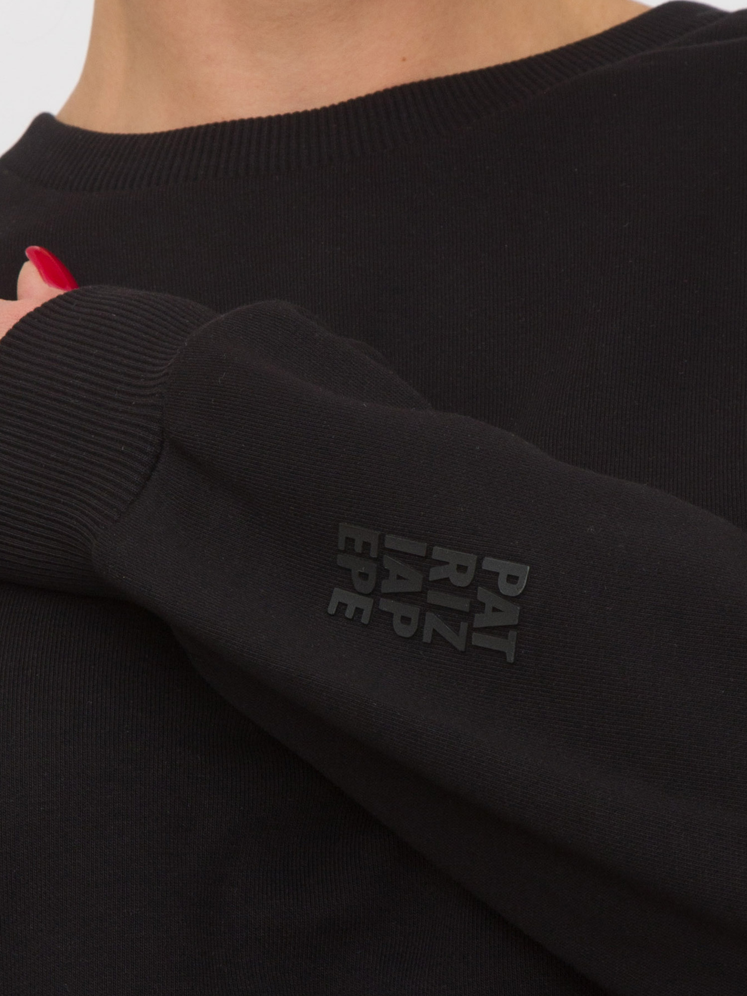 Brand: PATRIZIA PEPEFelpa in cotone Patrizia Pepe, cropped sul davanti e regolare dietro per un effetto asimmettrico. Il tocco in più: la stampa Patrizia Pepe. Vestibilità regolare, maniche lunghe e scollo rotondo.