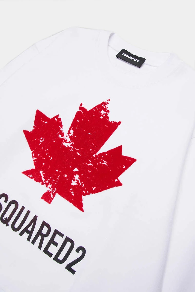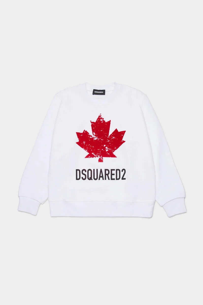 Felpa Dsquared2 Kids realizzata in jersey di cotone, vestibilità slouchy, girocollo e stampa destroyed foglia d'acero.