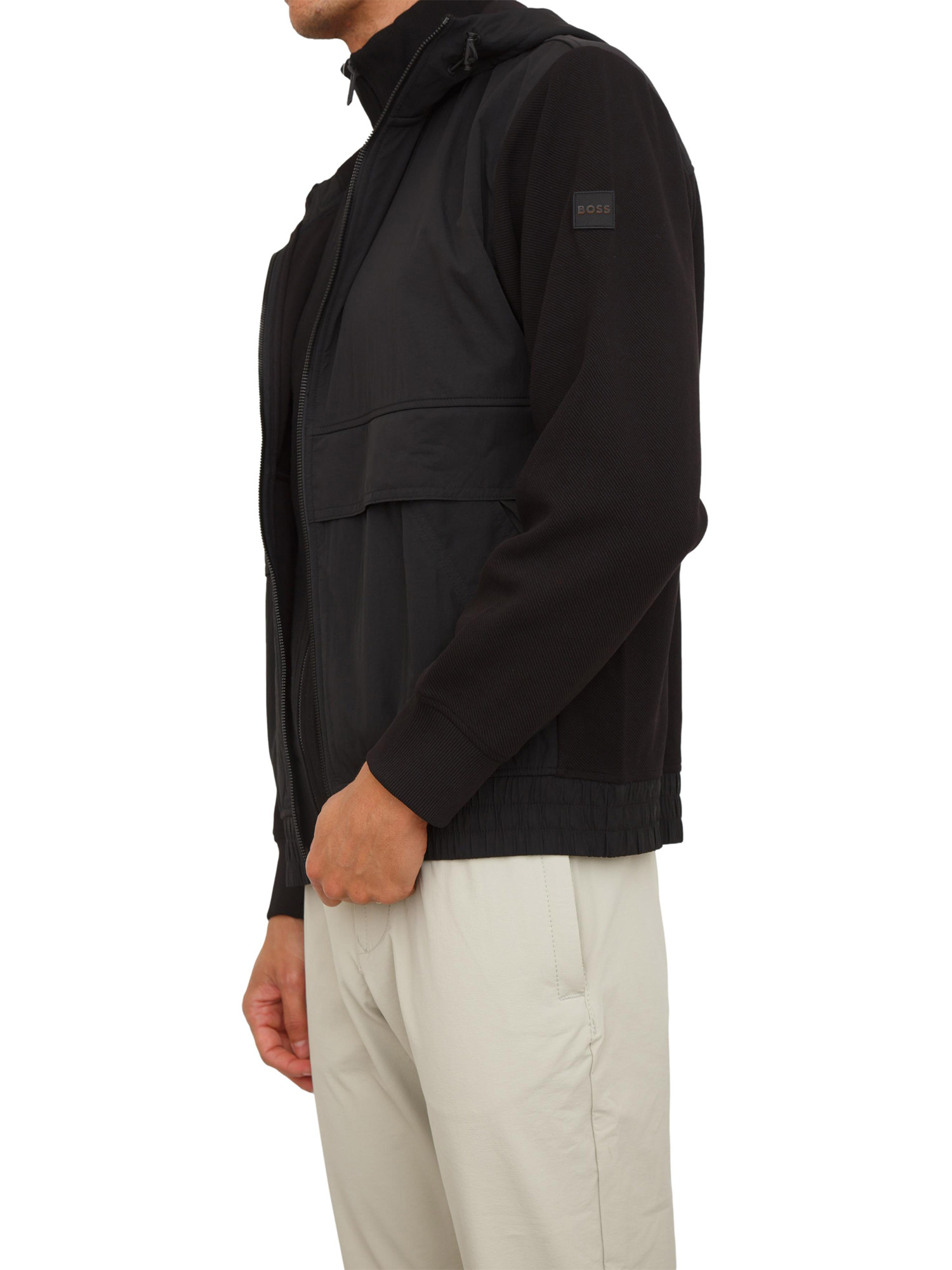 Felpa giubbino Boss uomo bimaterico nero con cappuccio