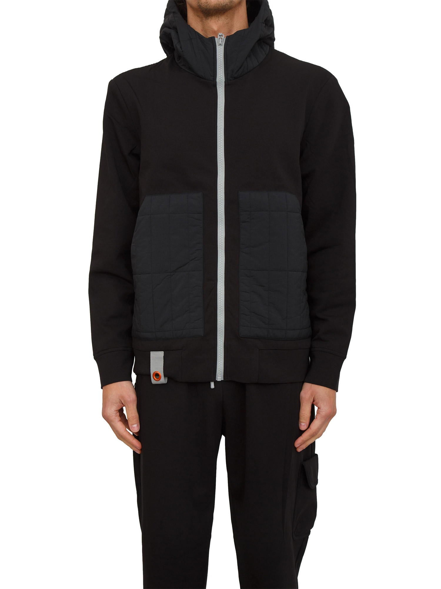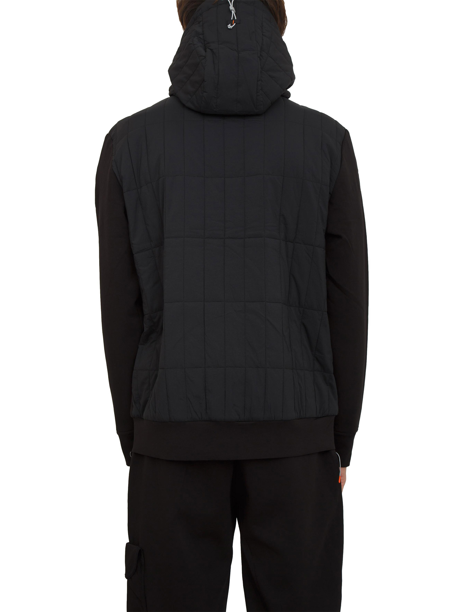 Brand: DEKKERFelpa uomo Dekker modello KEREL BMAT realizzata in doppio tessuto per unire comfort urbano, leggerezza e funzionalità tecnica. Corpo in scuba misto cotone e poliestere elasticizzato ed inserti come tasche frontali, cappuccio e retro del capo in nylon superleggero 20 denari, trapuntato a lingotti e finish semi-opaco. Il modello è alto 1.90m e indossa la taglia L.