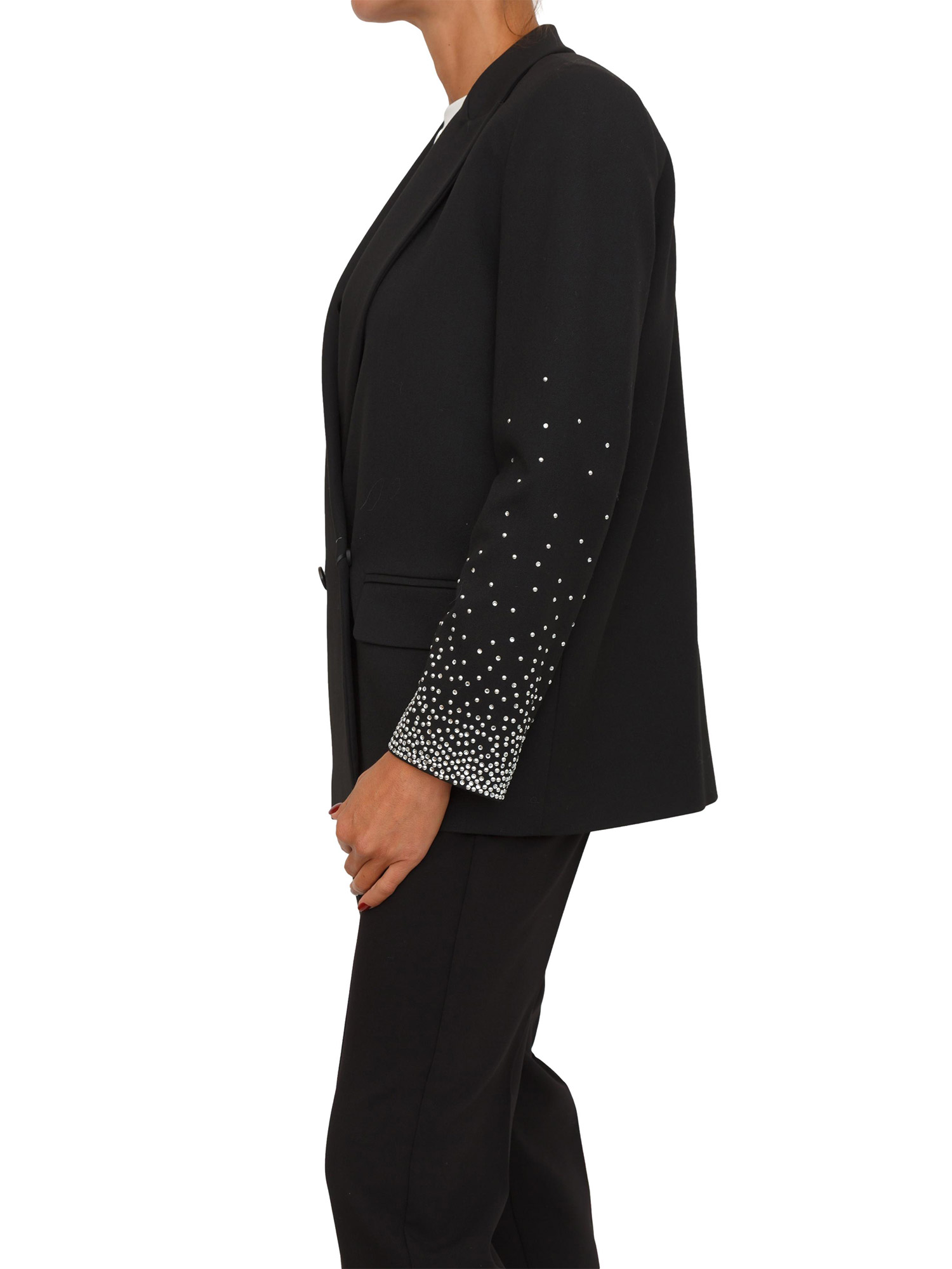 Giacca doppiopetto Marella cristalli su maniche in viscosa nera