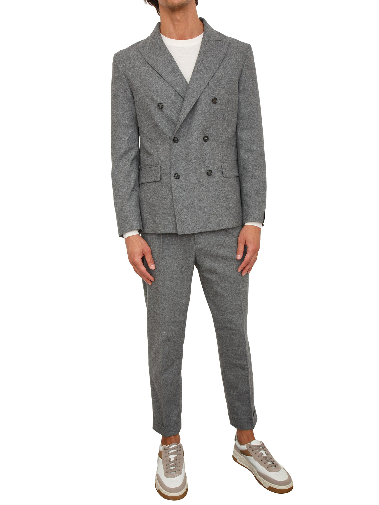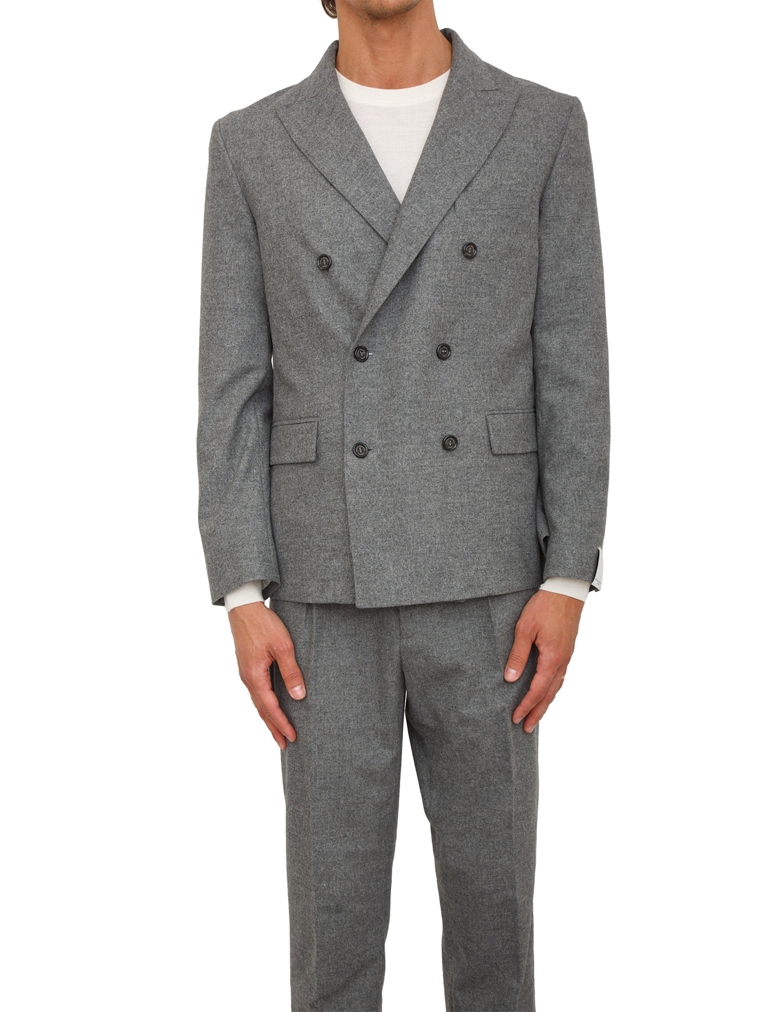 Giacca doppiopetto Paolo Pecora in fresco lana grigia melange