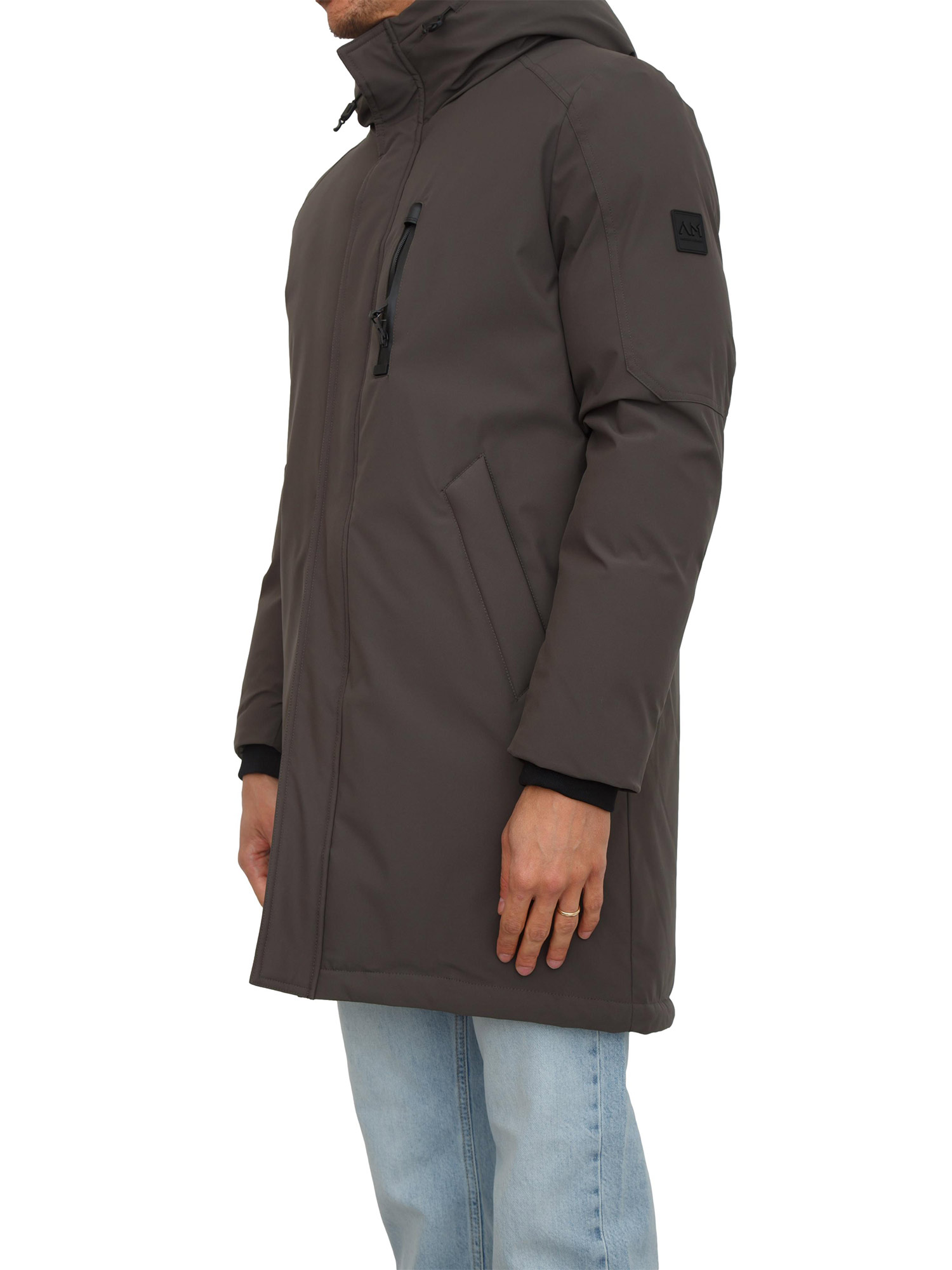 Brand: ANTONY MORATOGiaccone parka Antony Morato in tessuto tecnico waterproof con vestibilità regular. Eco-imbottitura DuPont Sorona®, cappuccio non rimovibile, chiusura zip doppio cursore e bottoni. Tasche laterali e tasca con zip sul petto, polsini in maglia e piccola patch logata sulla manica. Il modello è alto 1.90m e indossa la taglia 48.