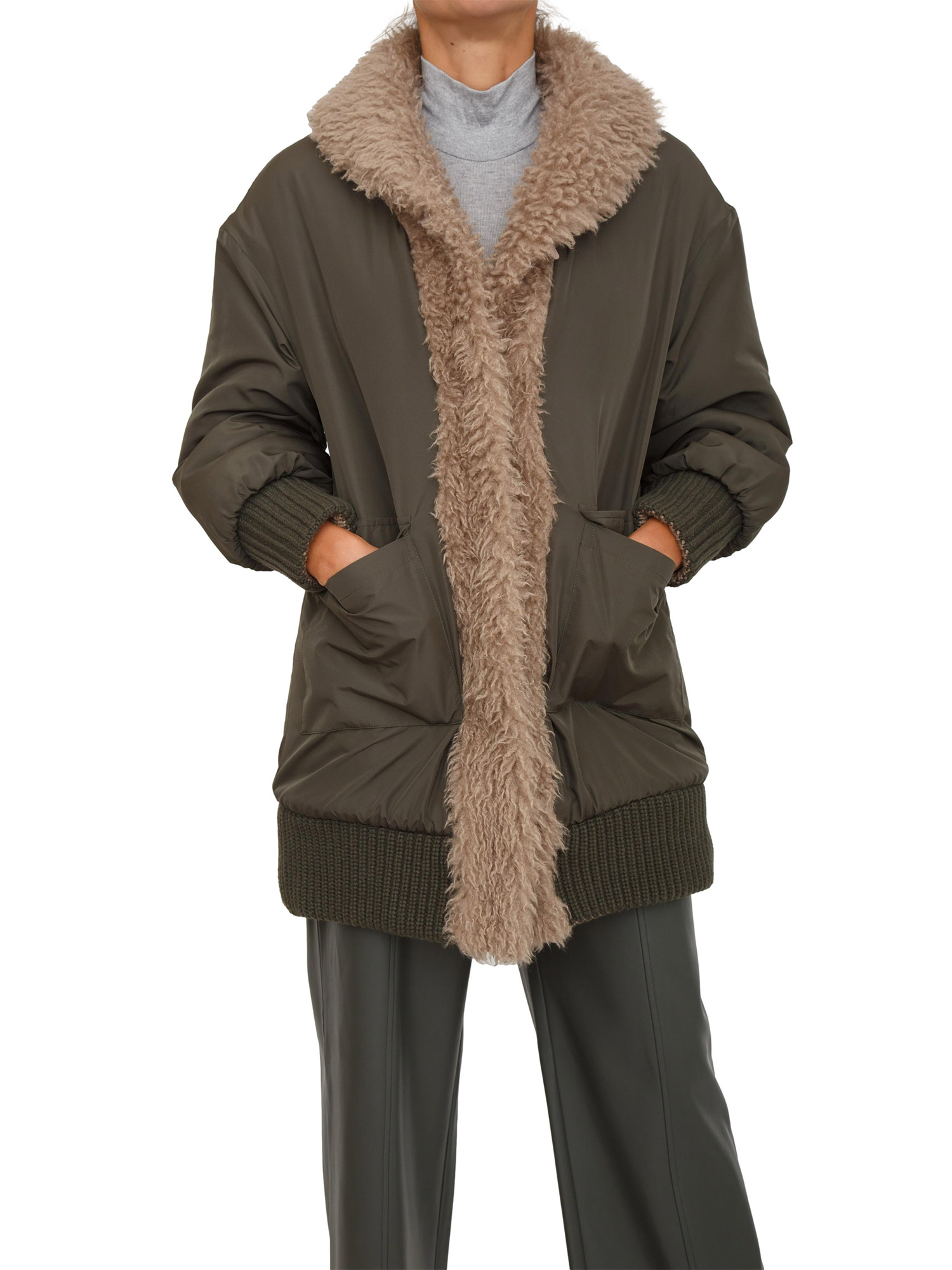 Brand: NENETTEUn giaccone Nenette versatile e contemporaneo, perfetto per look casual-chic. Da un lato nylon tecnico per un effetto moderno e leggero, dall’altro ecopelliccia curly per calore e stile. Reversibile e pratico, trasforma ogni outfit con un tocco sofisticato e confortevole. La modella è alta 1.72 e indossa la taglia 38.