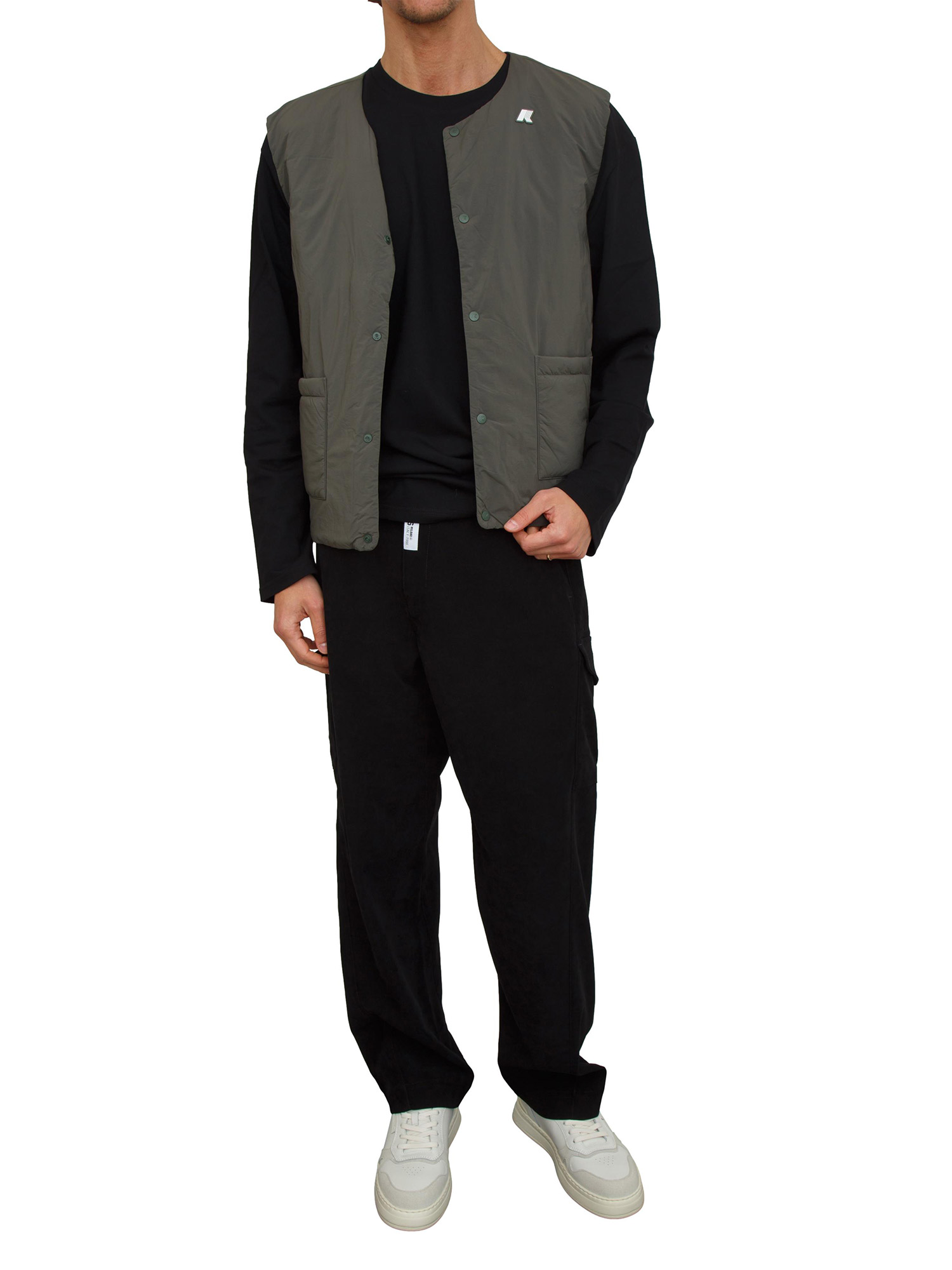 Brand: K-WAYGilet uomo K-Way modello Valty realizzato in tessuto tecnico antipioggia e antivento con imbottitura Primaloft®. Design liscio all'esterno e trapuntato all'interno con un motivo geometrico dall'effetto grafico distintivo. L’aspetto innovativo è l’imbottitura in Primaloft®. Il modello è alto 1.90m e indossa la taglia L.
