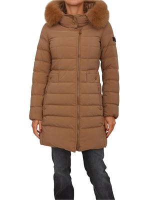 Brand: PEUTEREYPiumino lungo trapuntato Peuterey in leggero popeline di nylon e microfibra di poliestere dalla mano sostenuta e tatto polveroso. Imbottitura in piuma naturale certificatae trattamento idrorepellente. Zip centrale a doppio cursore, tasche laterali con bottone, collo avvolgente con bottoni a pressione e cappuccio con bordo in pelliccia di volpe removibile. La modella è alta 1.77 e indossa la taglia 40.