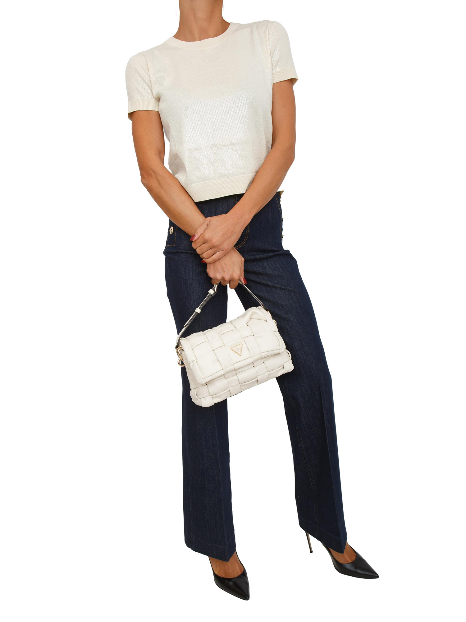 Brand: GUESS JEANSIndossa eleganza con i nostri pantaloni chino denim Guess Jeans donna a gamba larga, realizzati in misto cotone. La vita classica offre un comfort sofisticato mentre i bottoni decorativi aggiungono un tocco di stile esclusivo. La modella è alta 1.72 e indossa la taglia 25.