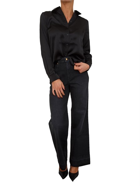 TWIN-SET Jeans Twinset in denim nero con cintura e maxi fibbia su vita