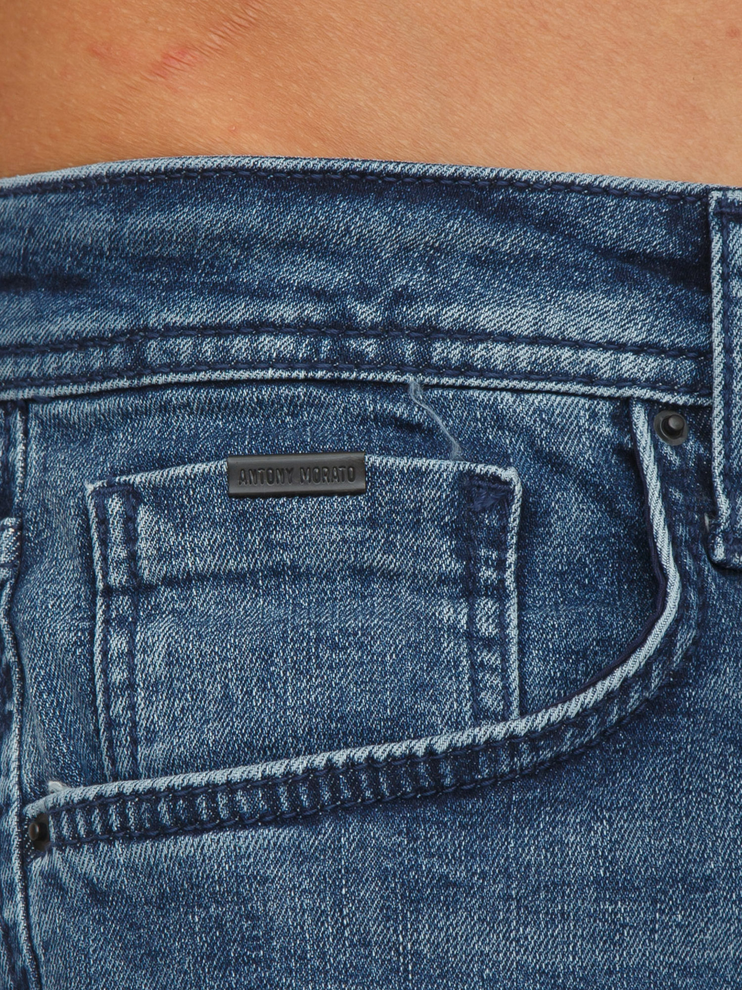 Brand: ANTONY MORATOJeans cinque tasche "Kurt" Antony Morato dalla vestibilità comfort tapered fit. Il modello è perfetto per chi desidera un denim dalla vestibilità aderente, ma rilassata, capace di valorizzare la silhouette restando comodo grazie alla morbidezza del tessuto. Colorazione blu malaga con lavaggio sfumato. Lunghezza regolare, cuciture tono su tono, patch logata applicata sul retro. Il modello è alto 1.90m e indossa la taglia 32.