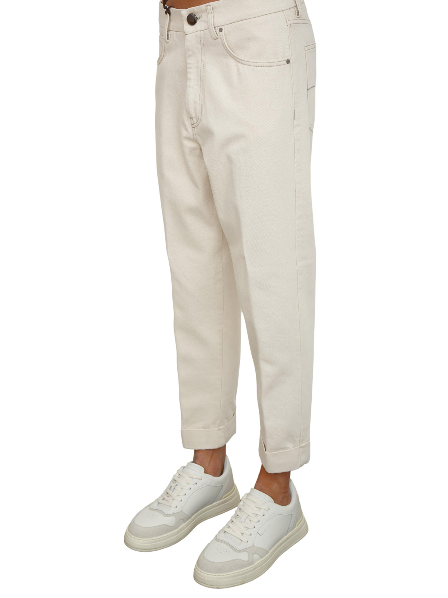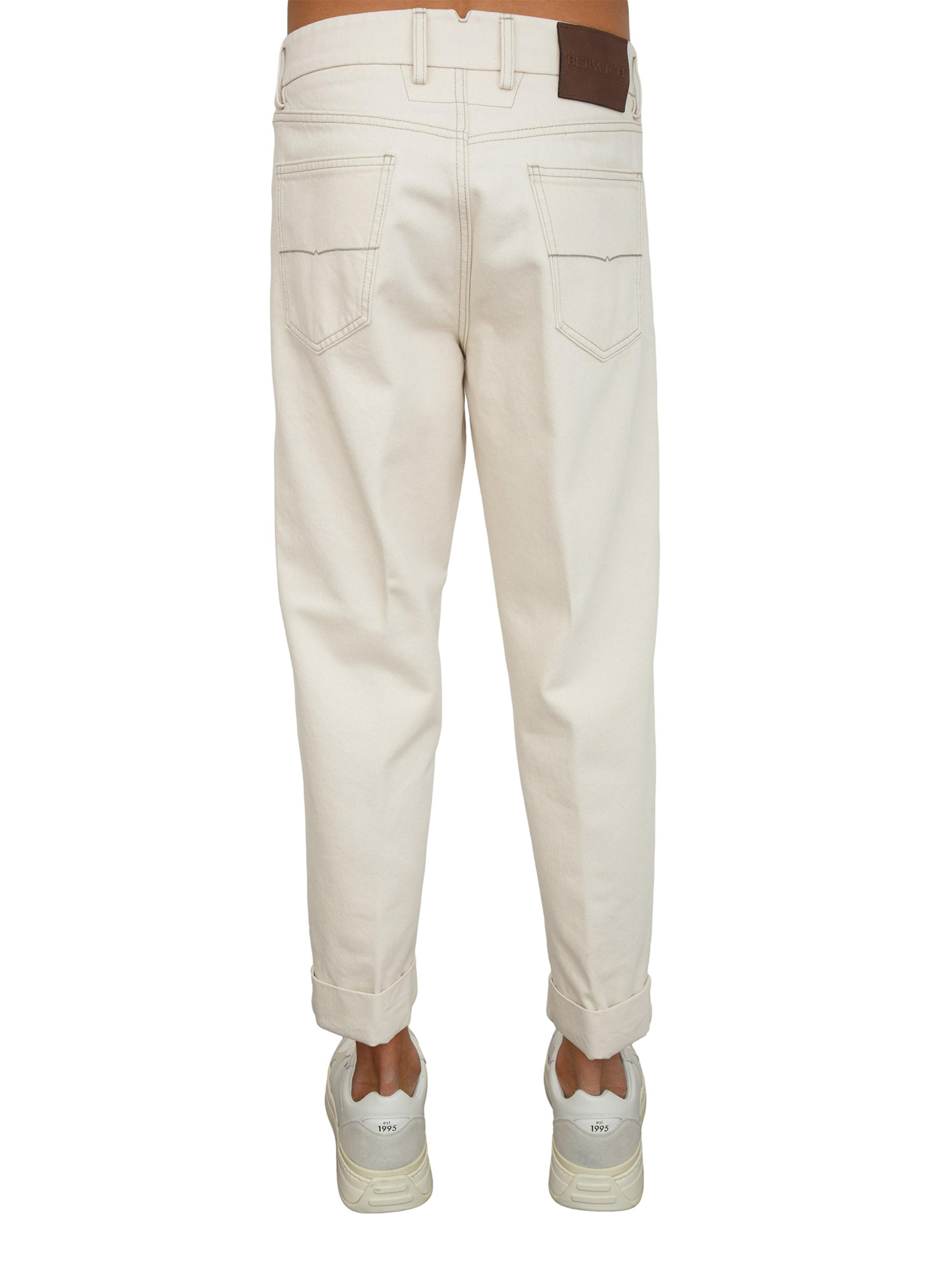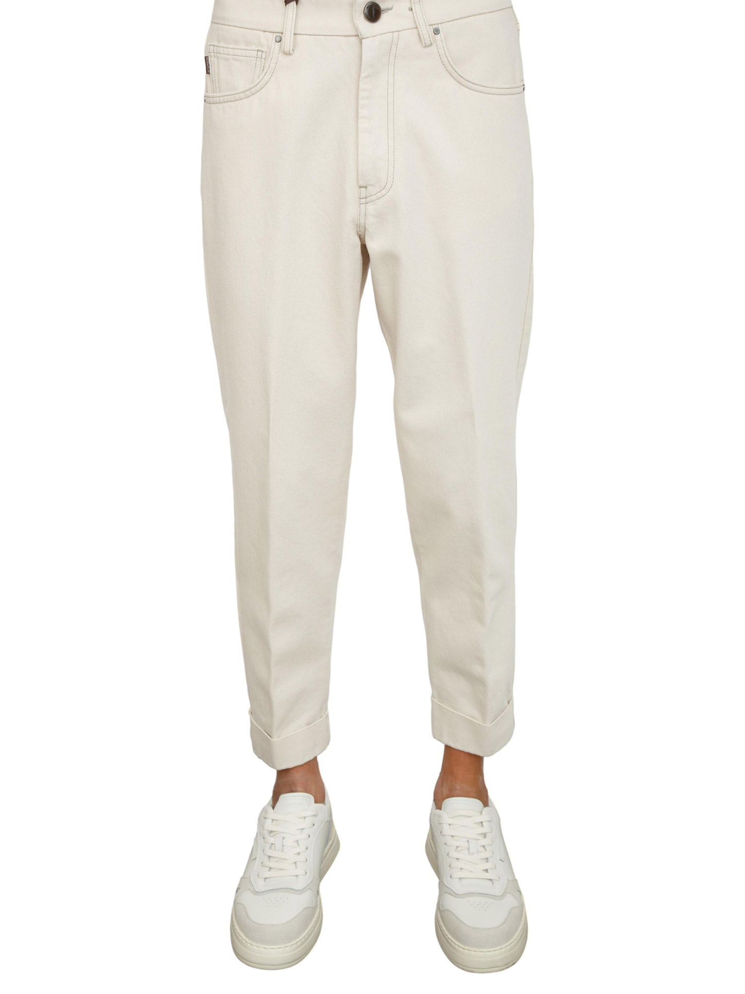 Brand: BERWICHJeans uomo Berwich modello Chiaia5T realizzati in pregiato denim con vestibilità slim. Design dotato di piega stirata avanti e dietro, cinque tasche, chiusura con zip nascosta e bottone e risvolto sul fondo. Bellissimo e raffinato. Il modello è alto 1.90m e indossa la taglia 46.
