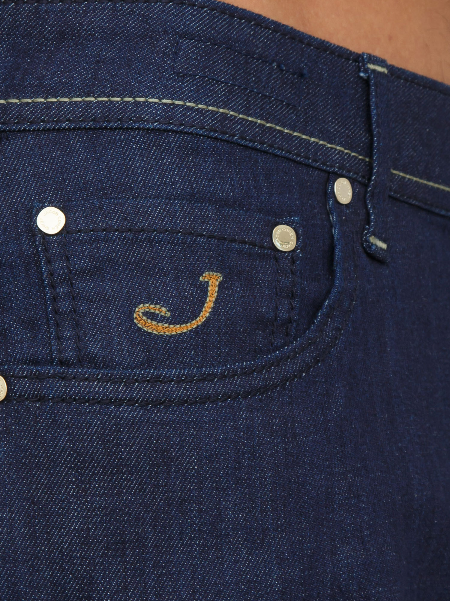 Brand: JACOB COHENJeans uomo Eduard Jacob Cohen modello cinque tasche con vestibilità regular. Design in pregiato denim di cotone blu scuro con chiusura zip coperta e bottone e bandana inclusa. Bello da indossare su svariato outfit. Il modello è alto 1.90m e indossa la taglia 32.