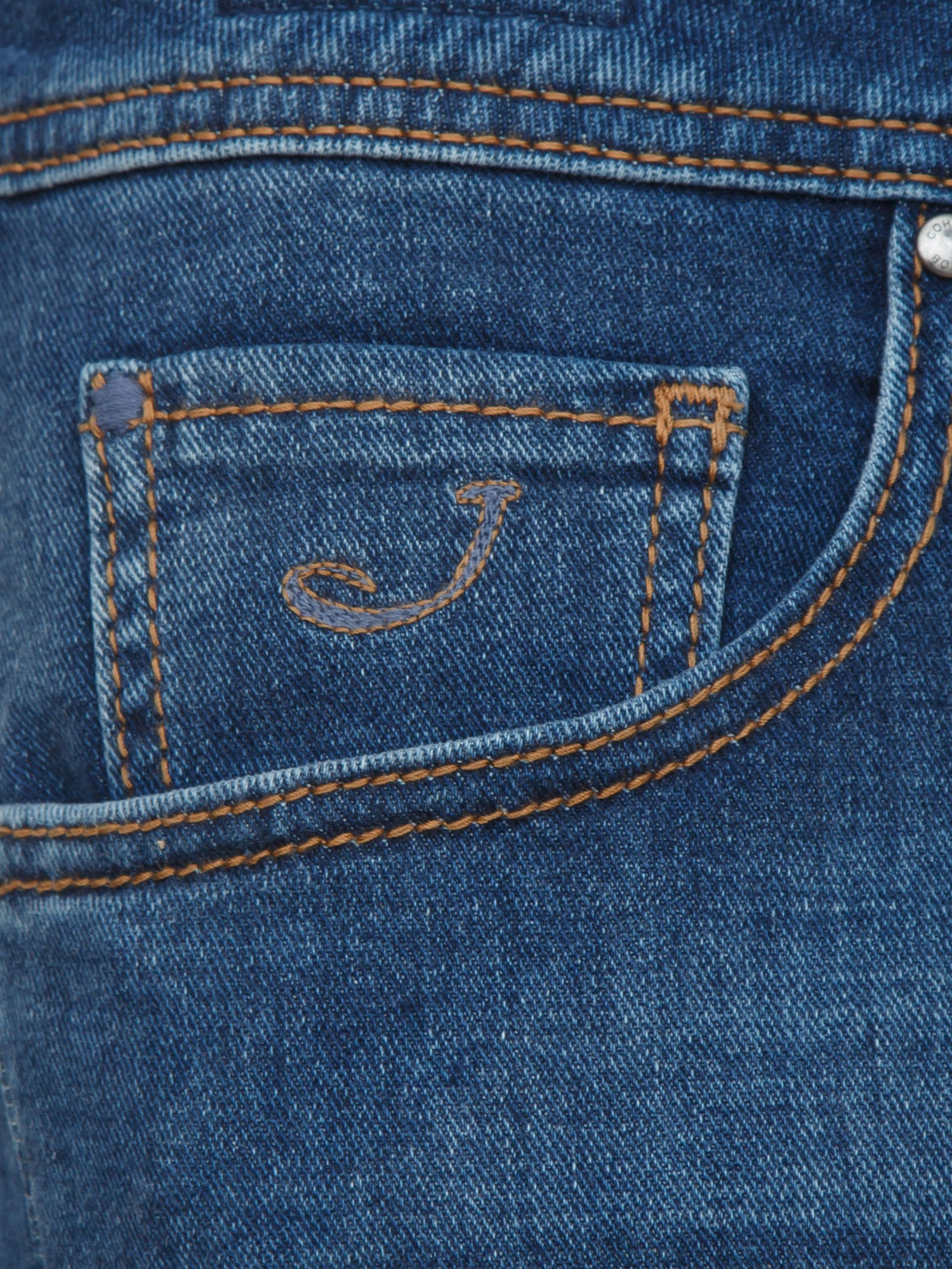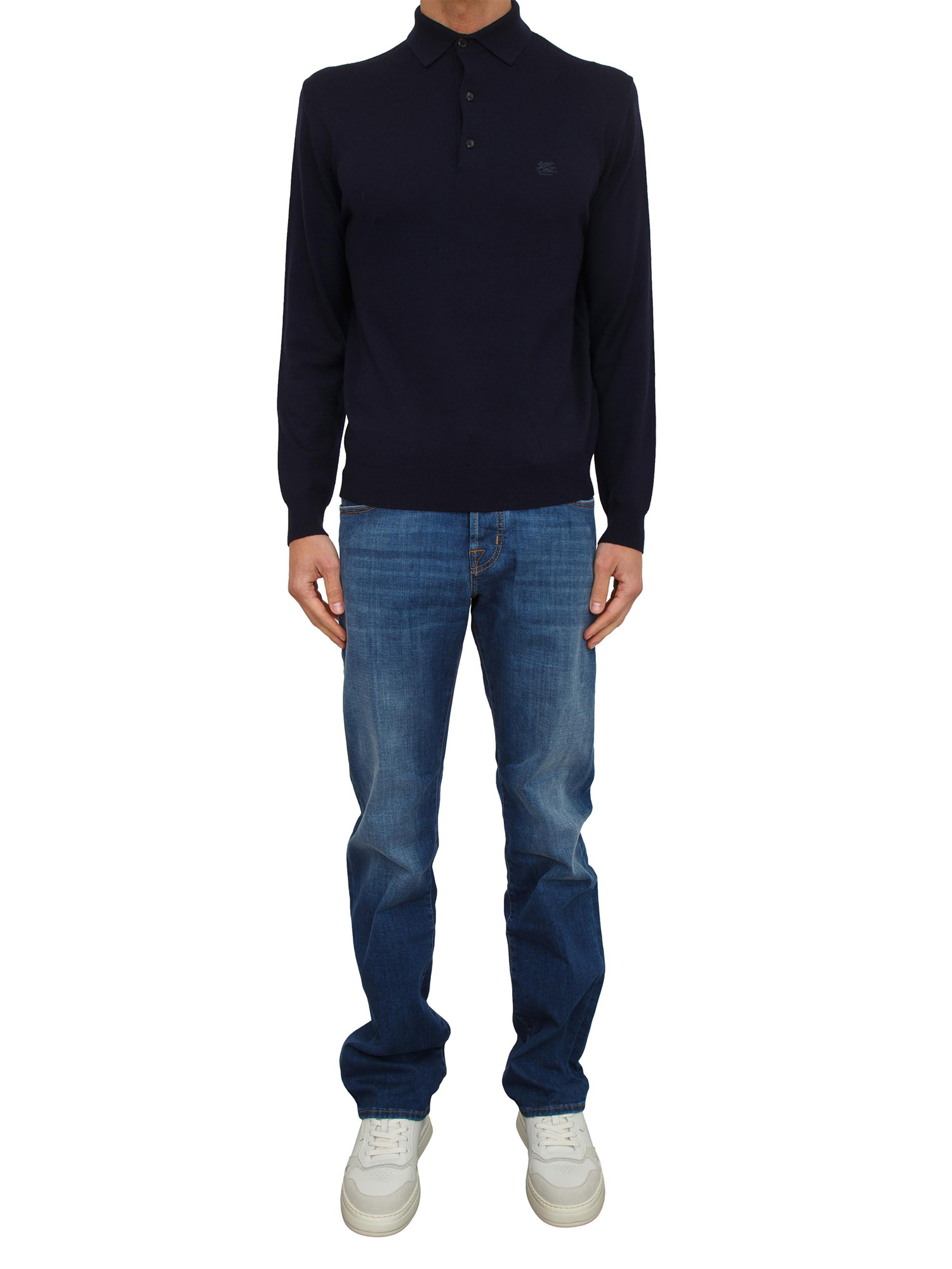Brand: JACOB COHENJeans uomo Eduard Jacob Cohen modello a cinque tasche e vestibilità regular. Realizzati in pregiato denim blu scuro effetto used che dona comfort e stile ineguagliabili. Chiusura con bottone logato in metallo, zip coperta e bandana inclusa. Il modello è alto 1.90m e indossa la taglia 32.