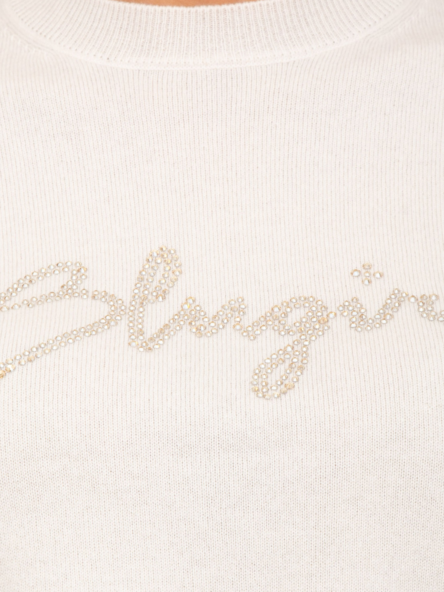 Maglia Blugirl in lana e cachemire avorio logo cristalli