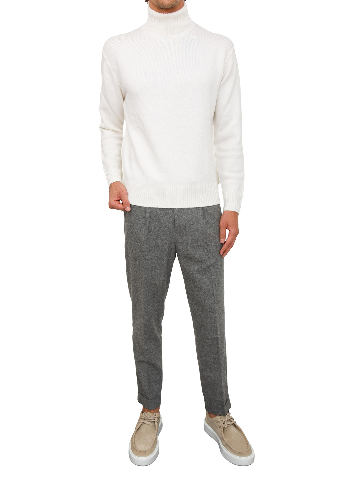 Maglia collo alto Paolo Pecora in lana merino bianca
