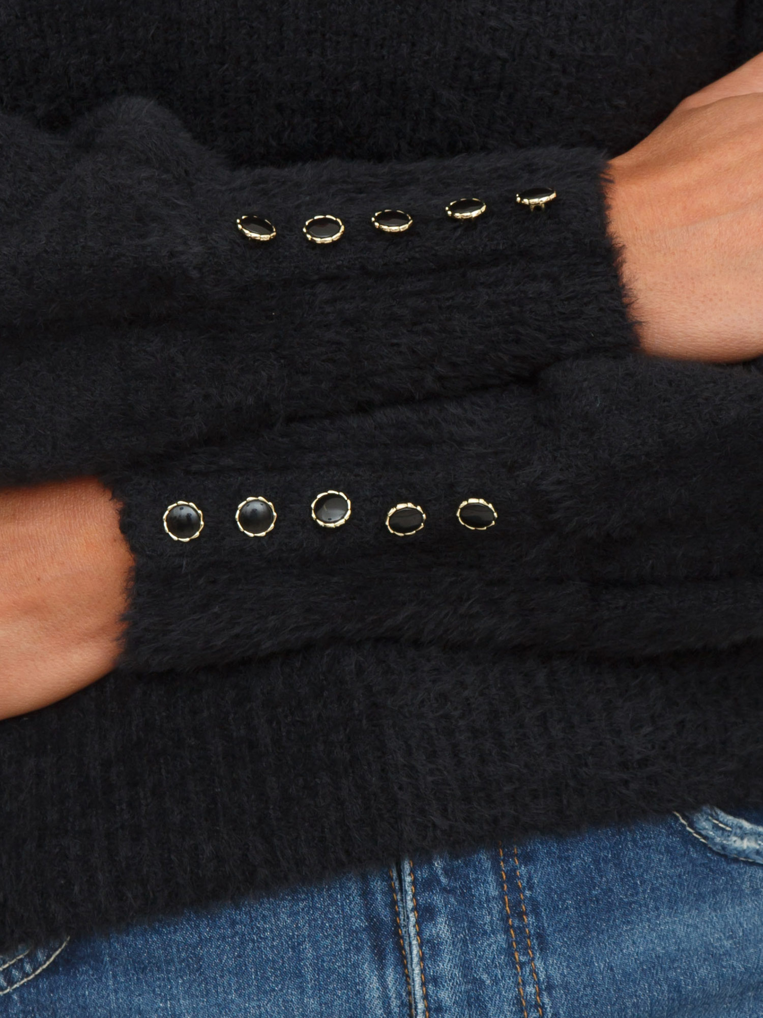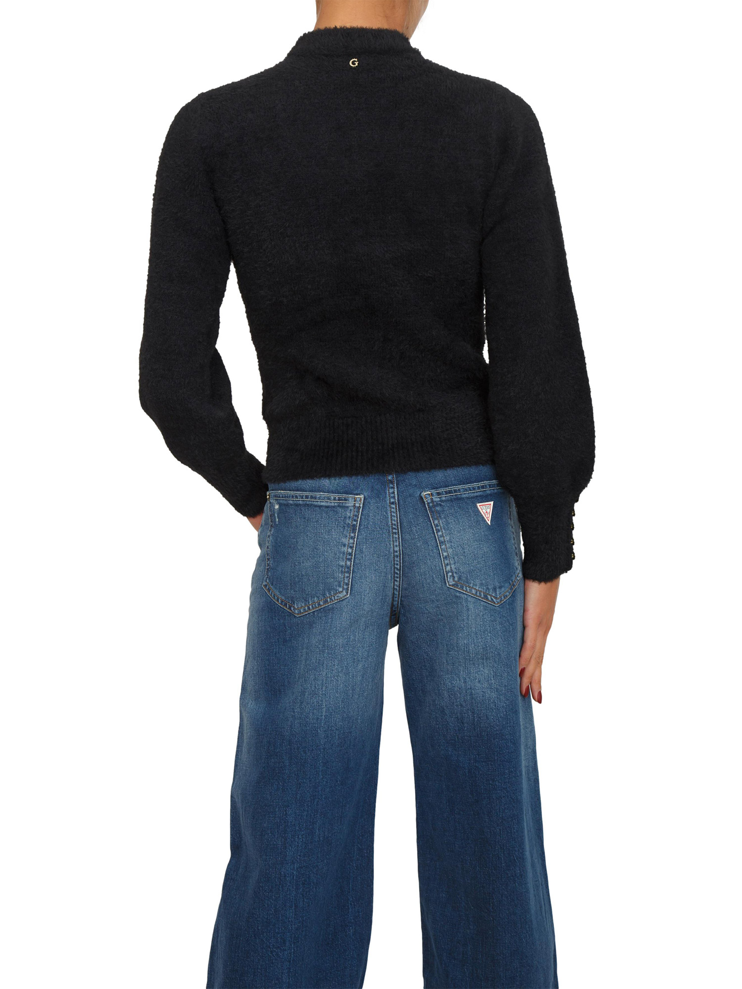 Maglia cropped Guess Jeans in filato fuzzy nero