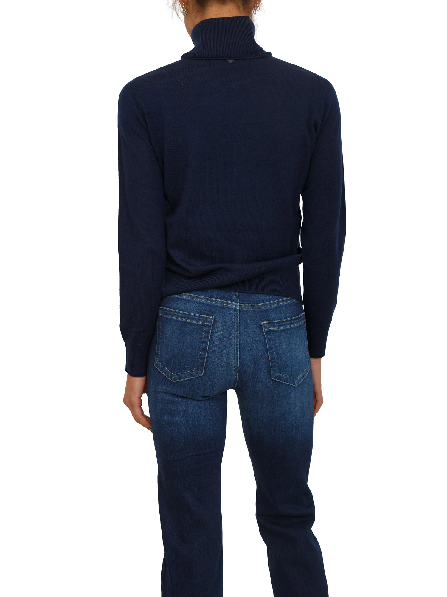 Maglia donna a collo alto Mita Nenette in lana merino blu