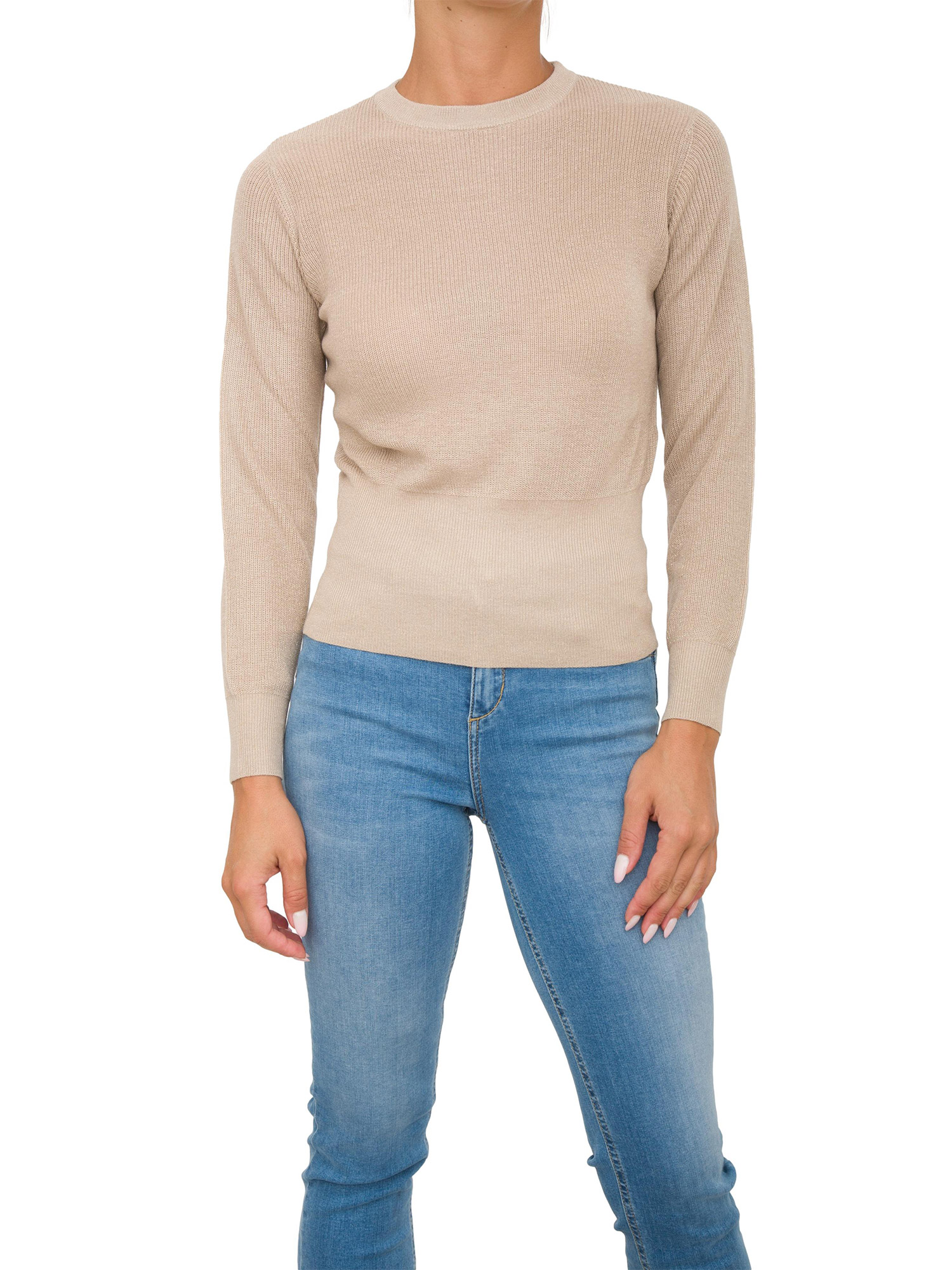 Brand: EMME MARELLAMaglione leggero Emme Marella tinta unita in maglia di misto lana con lurex. Girocollo, polsini e fondo a costine. Regular fit.La modella è alta 1.72 e indossa la taglia S.