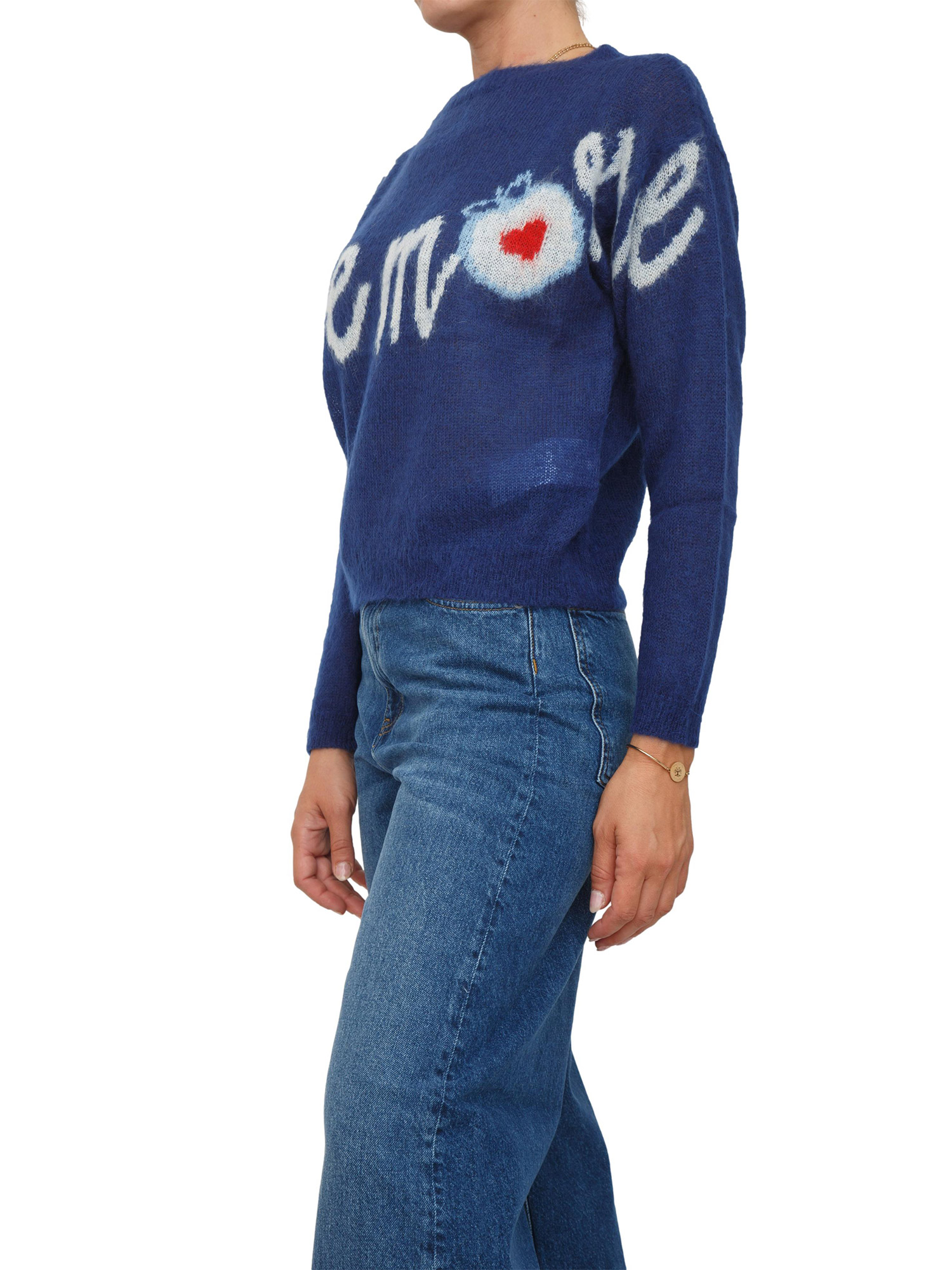 Maglia iBlues morbida in misto mohair blu con lettering a contrasto