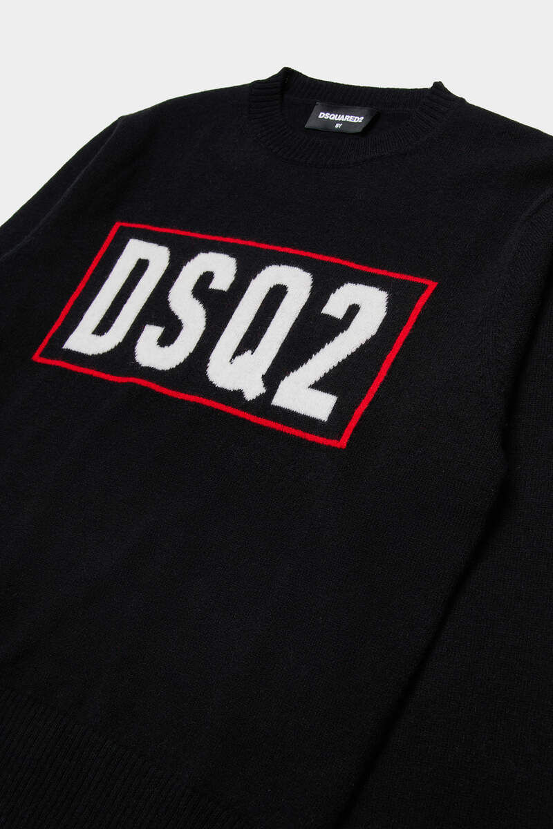 Maglia Dsquared2 Kids realizzata in lana merino con logo, girocollo e bordi a coste.