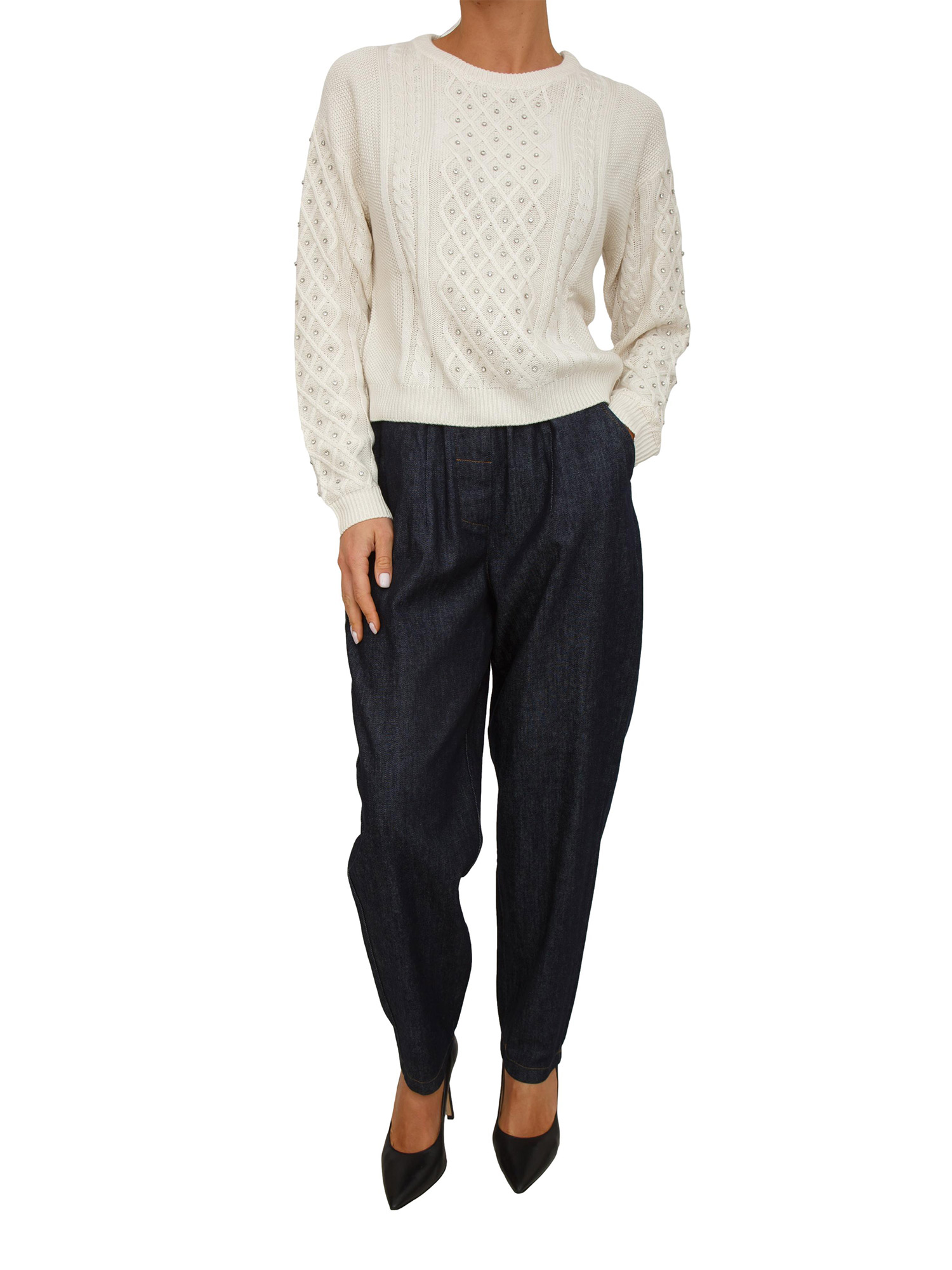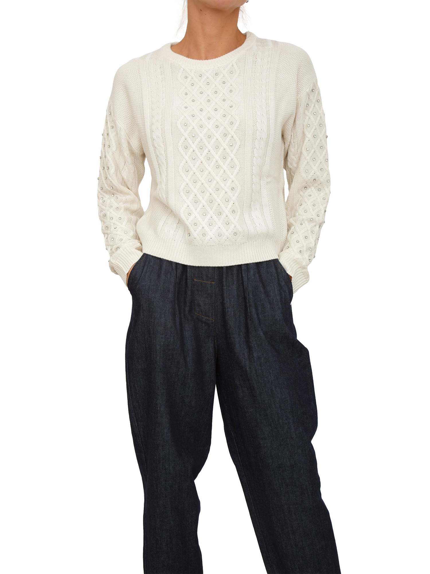 Maglia Emiliana Kocca bianco panna con diamantini
