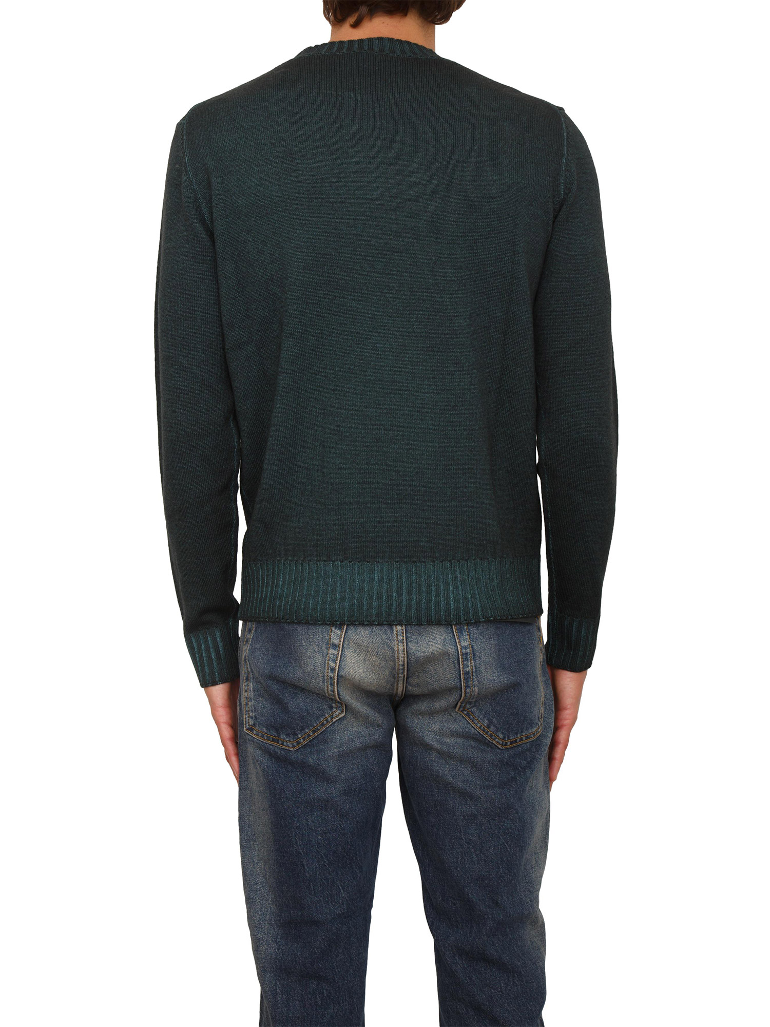 Maglia girocollo Aiace Galassi in pura lana verde con fondi a costine delavÉ