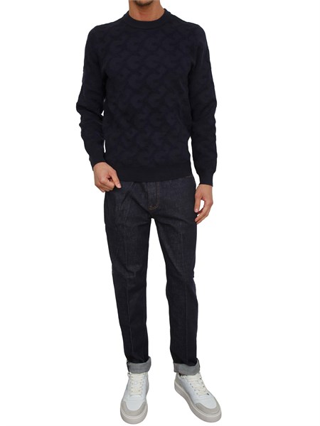Maglia giubbotto Boss uomo in misto cotone e cashmere blu