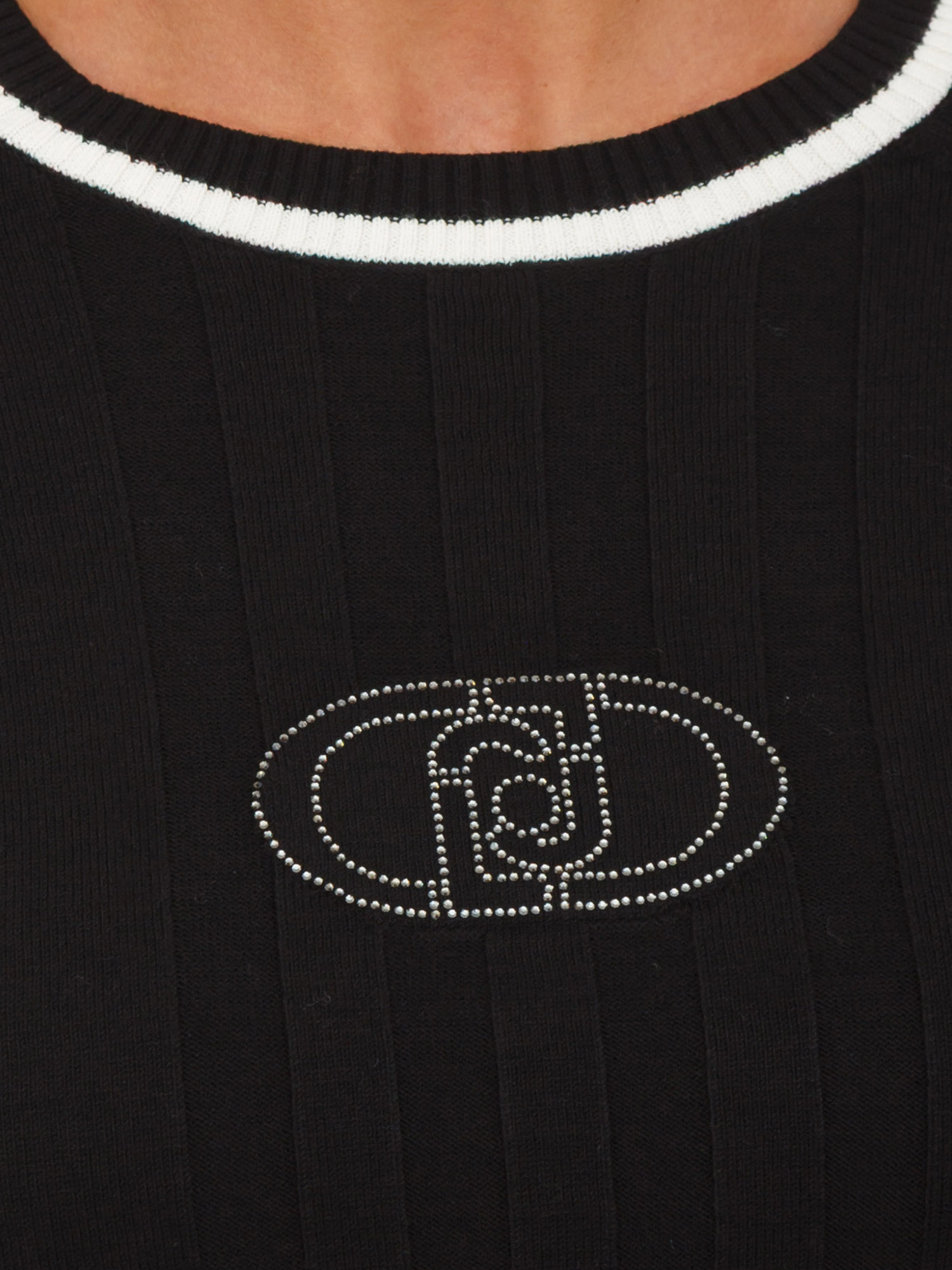 Maglia Liu Jo donna in viscosa nera con dettagli a contrasto
