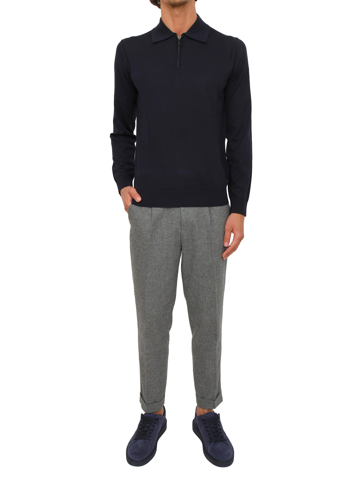 Maglia polo mezza zip Paolo Pecora in lana blu