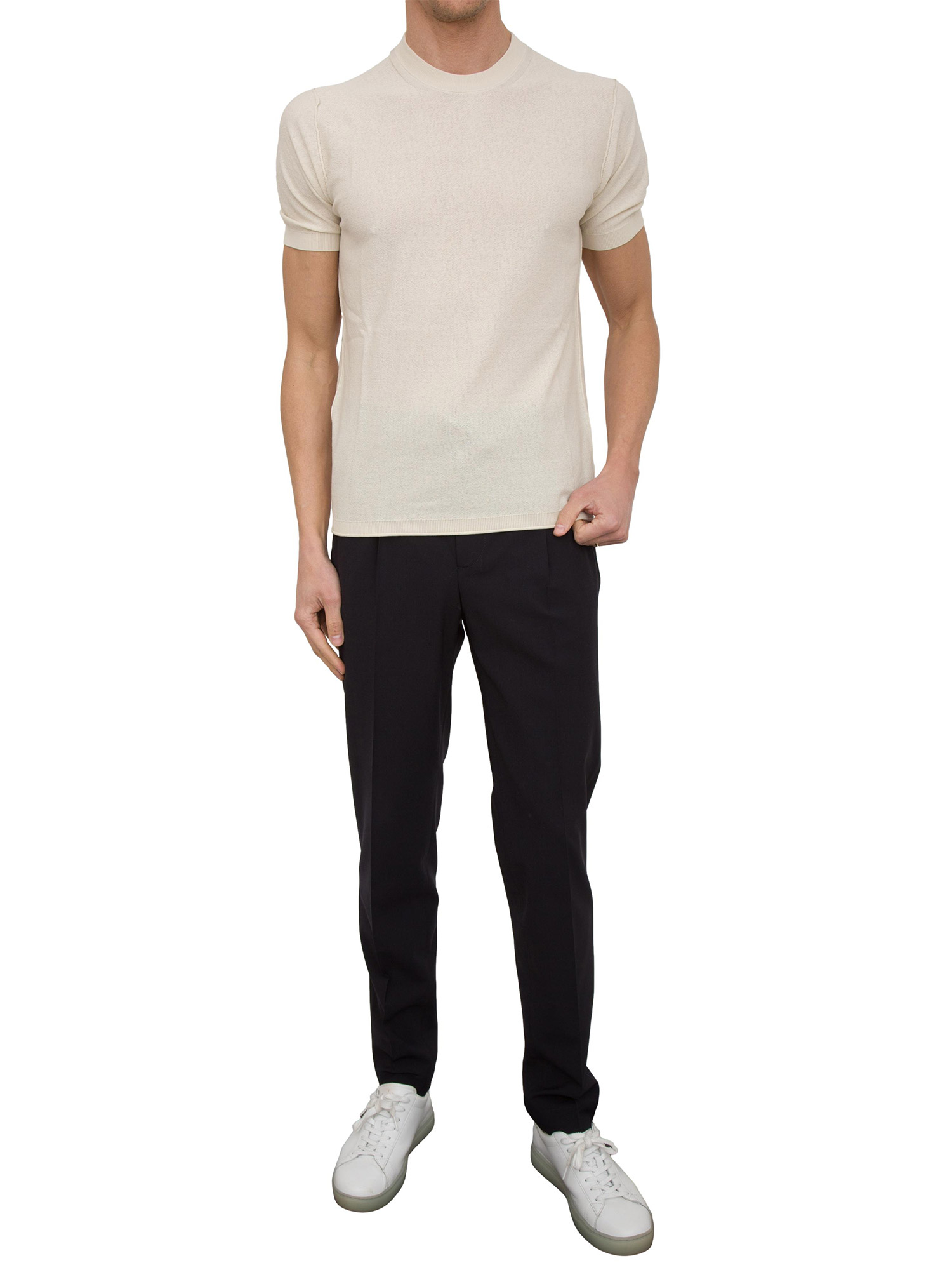 Brand: PAOLO PECORAT-shirt da uomo Paolo Pecora Milano in puro cotone, maniche corte e fondo a costine. Vestibilità slim per un look essenziale e sofisticato.Il modello è alto 1.90m e indossa la taglia L.