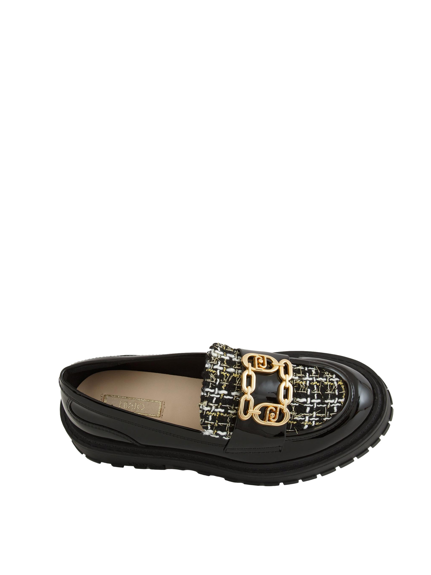 Brand: LIU JOMocassini Liu Jo donna Rumi 34 realizzati in vernice con inserto bouclé. Design con accessorio chain con logo, fondo con guardolo logato e battistrada dentellato. Altezza suola: 5 cm.