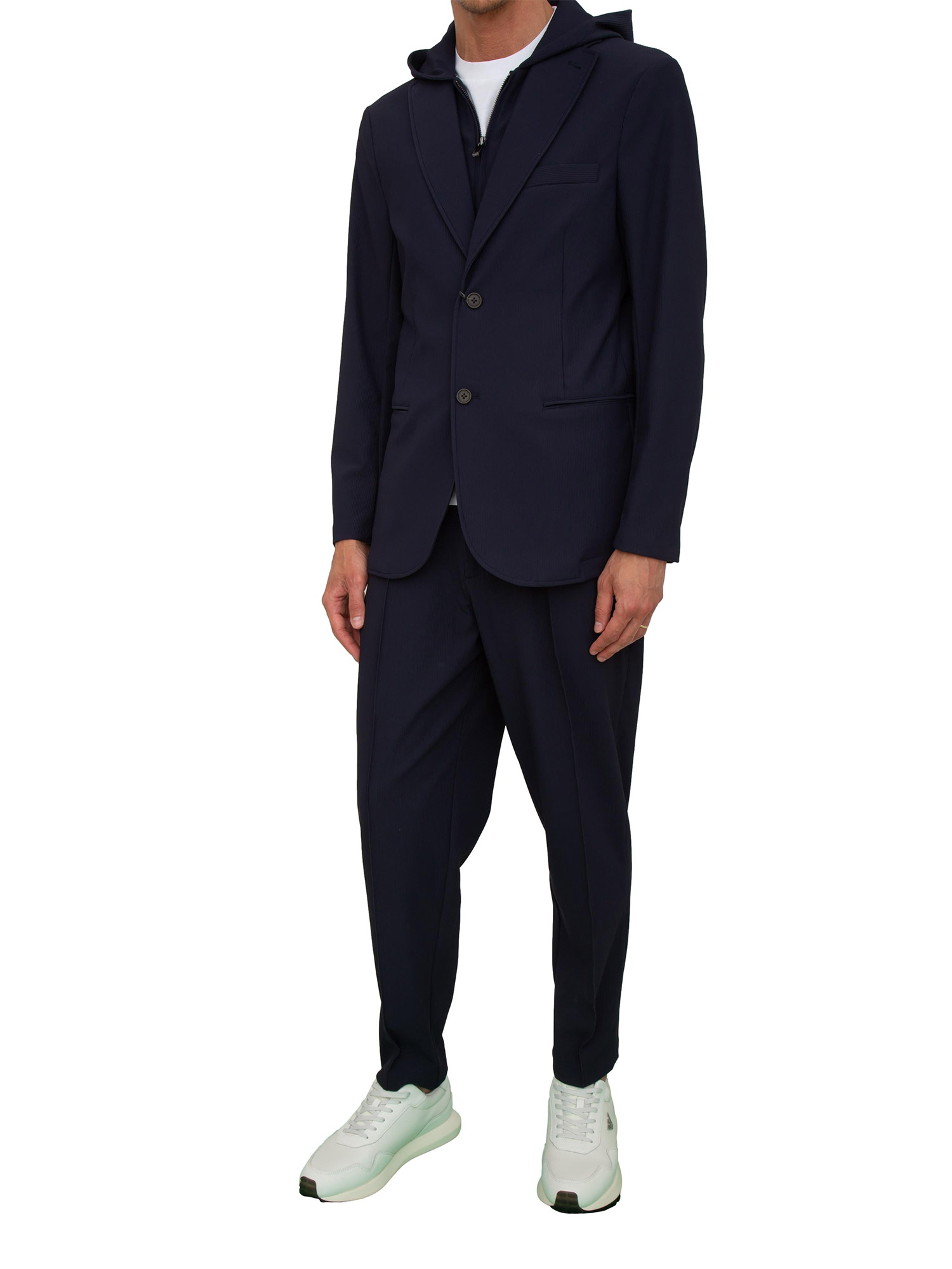 Brand: EMPORIO ARMANIPantaloni uomo Emporio Armani provvisti di coulisse interna in vita e di nervature frontali decorative, realizzati in nylon stretch e caratterizzati da una trama formata da fitte costine a rilievo all over tipica del tessuto canneté. Il modello è alto 1.90m e indossa la taglia 48.