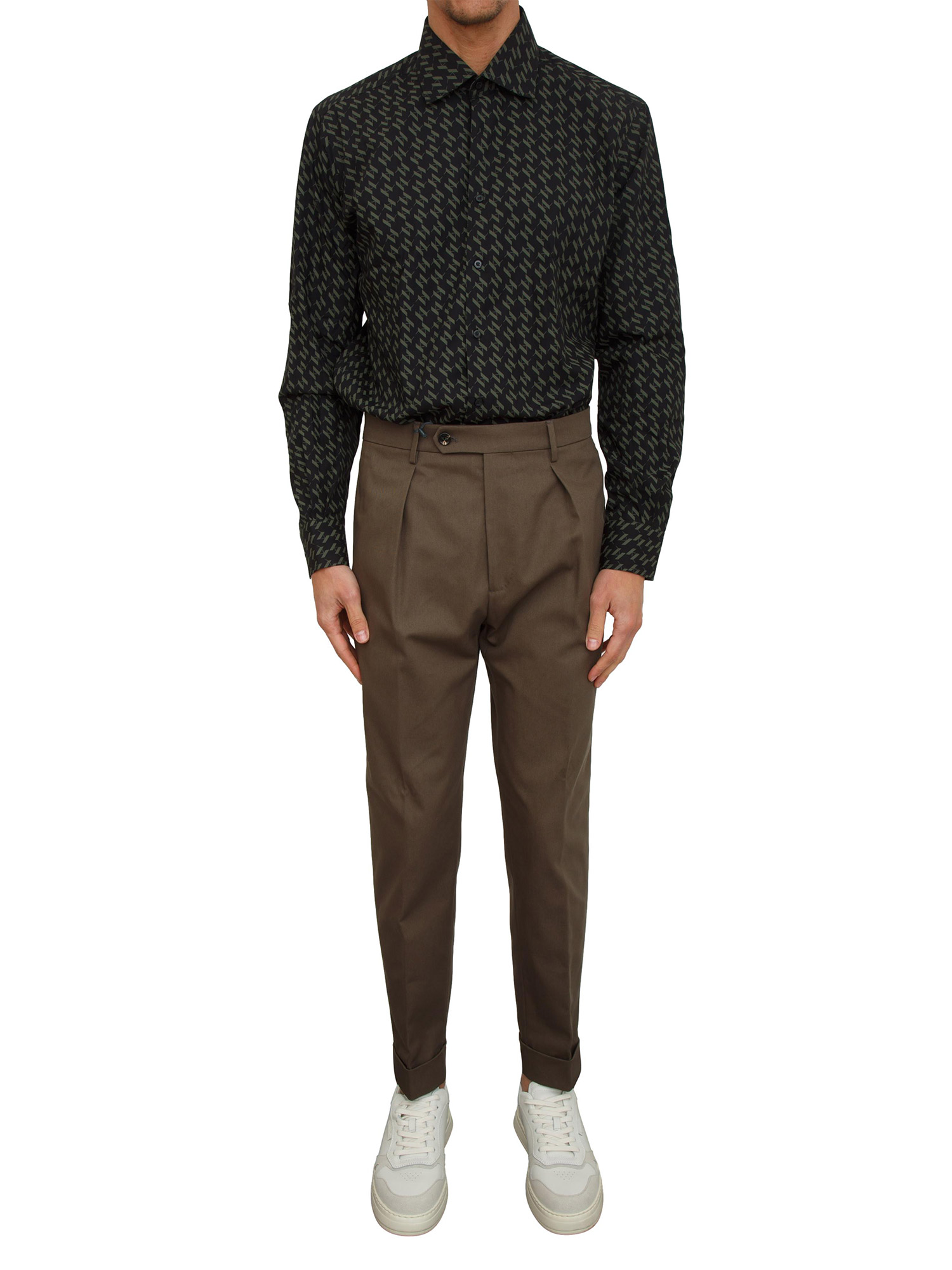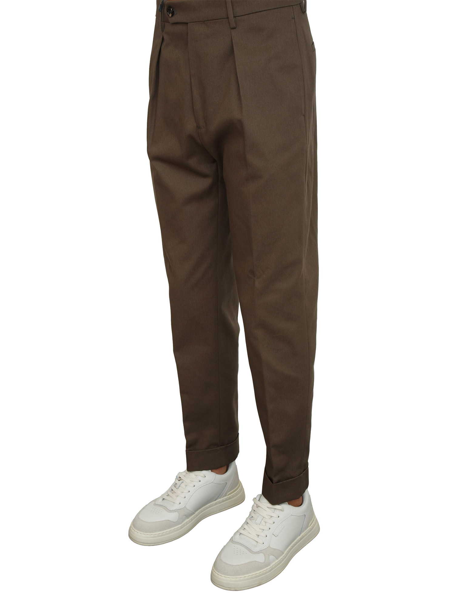 Brand: BERWICHPantaloni uomo Berwich modello Chiaia realizzati in pregiatissimo twill di cotone con vestibilità slim. Design dotato di pince, tasche chino, chiusura con zip nascosta e bottone e risvolto sul fondo. Semplicemente stupendo. Il modello è alto 1.90m e indossa la taglia 46.
