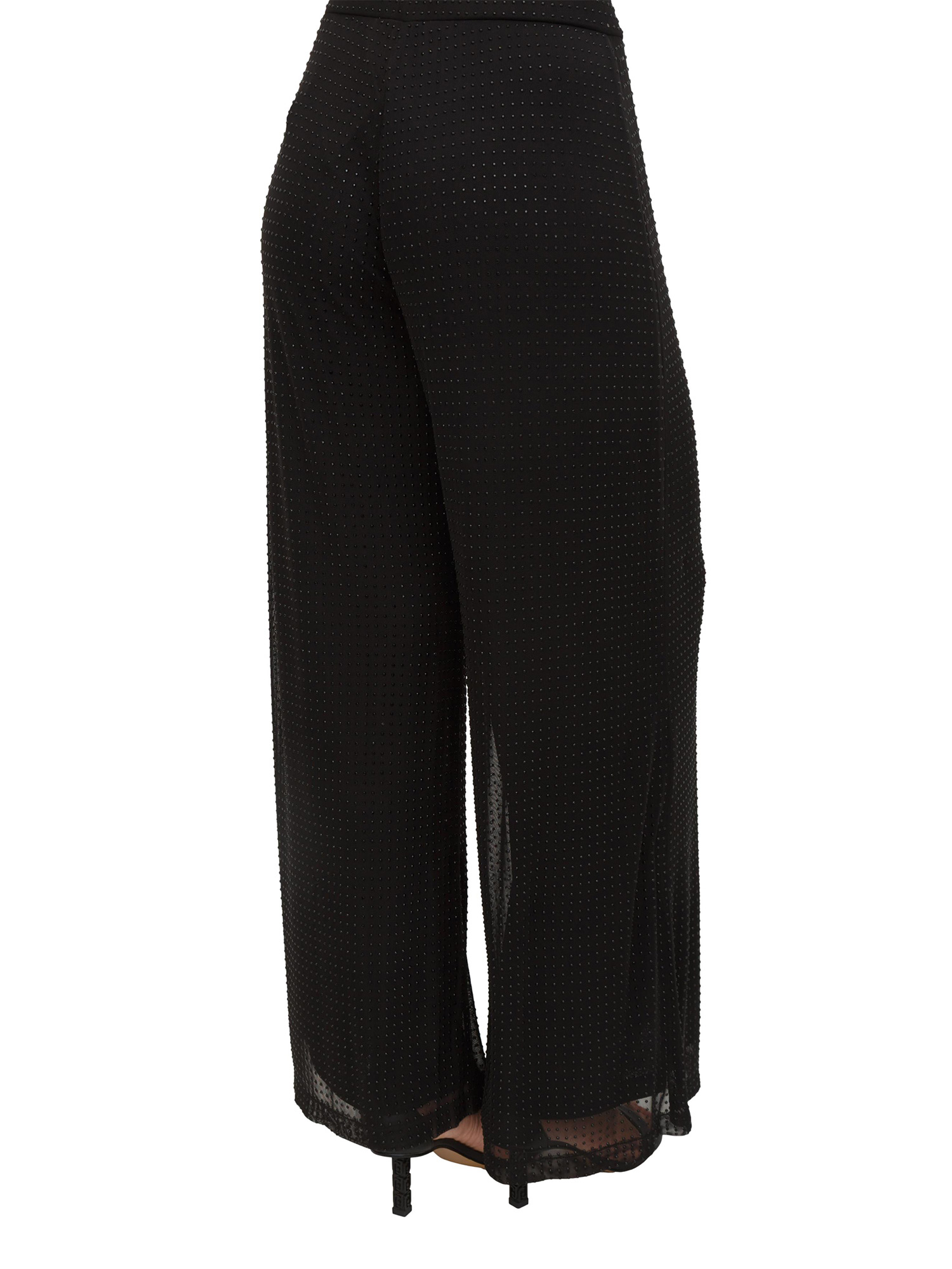 Pantaloni fluidi Marella in jersey di tulle nero con strass all over