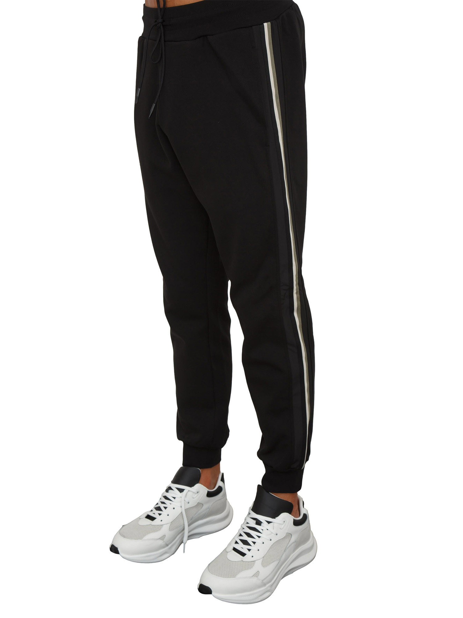 Pantaloni tuta Antony Morato in misto cotone interlock nero con bande laterali
