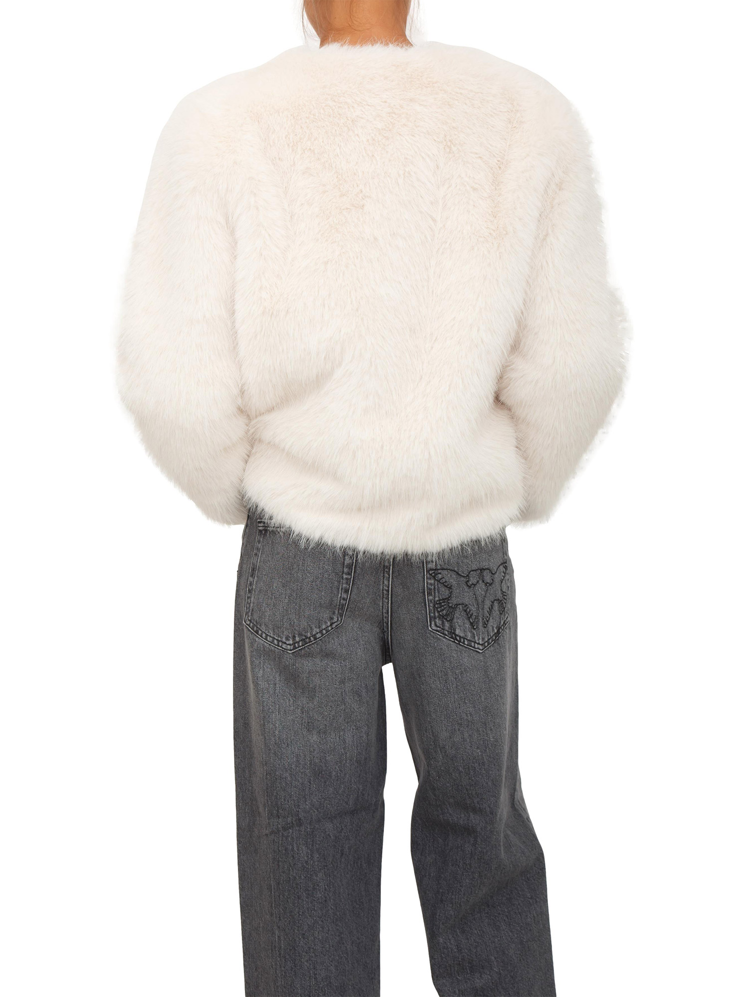 Brand: IBLUESPelliccia iBlues in soffice tessuto dalla linea morbida e scollo tondo. Modello foderato a maniche lunghe con chiusura con ganci e tasche laterali. Super fluffy: tessuto effetto nuvola per definire un nuovo concetto di comfort. La modella è alta 1.72 e indossa la taglia 42.